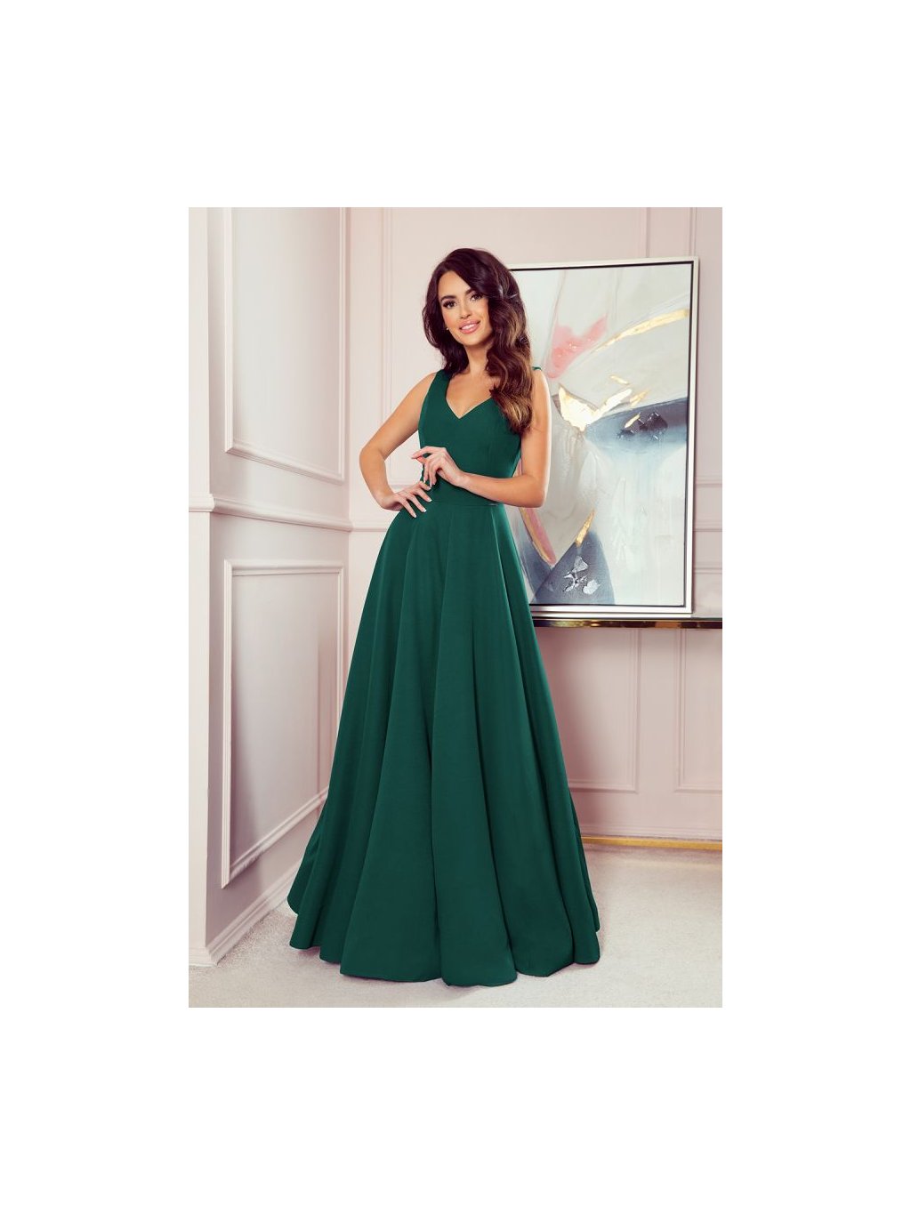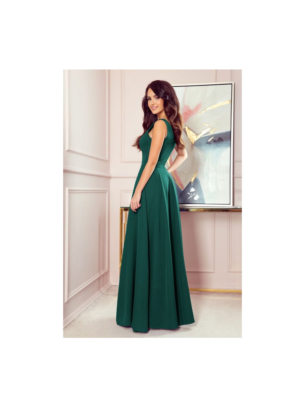 246-4 CINDY dlouhé šaty s výstřihem - zelené