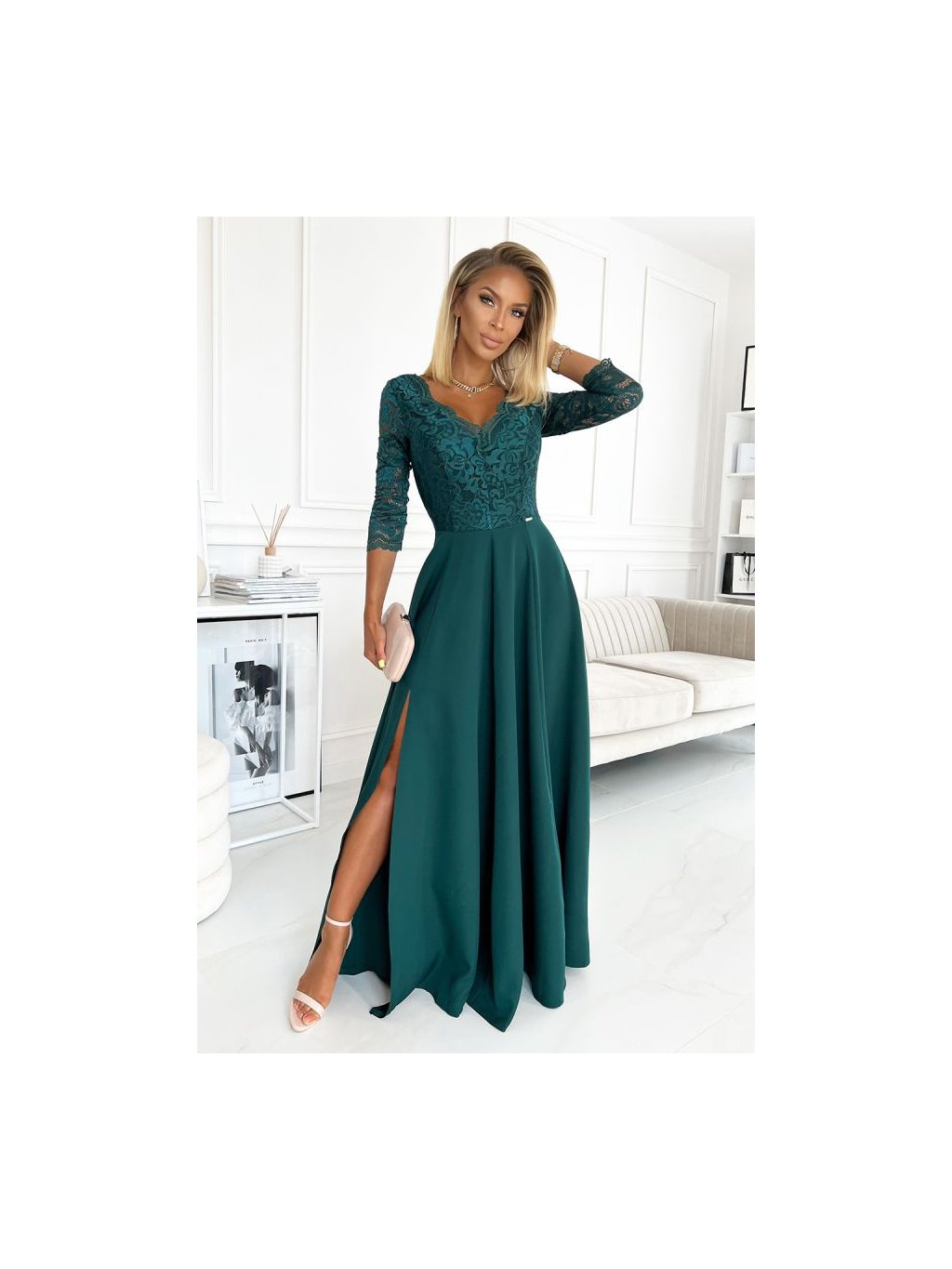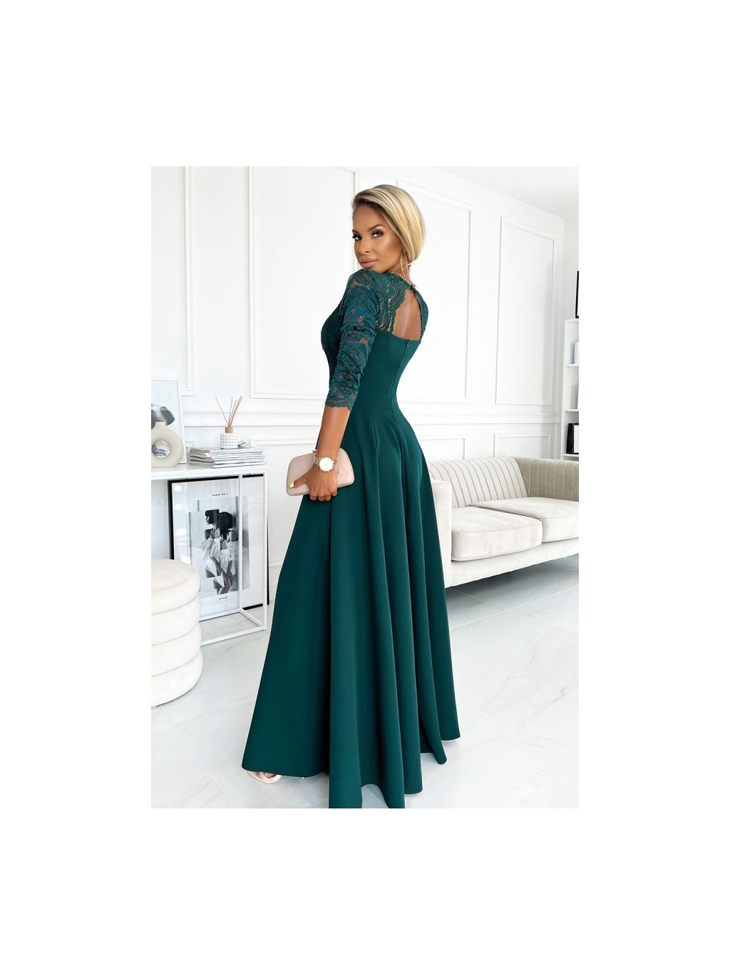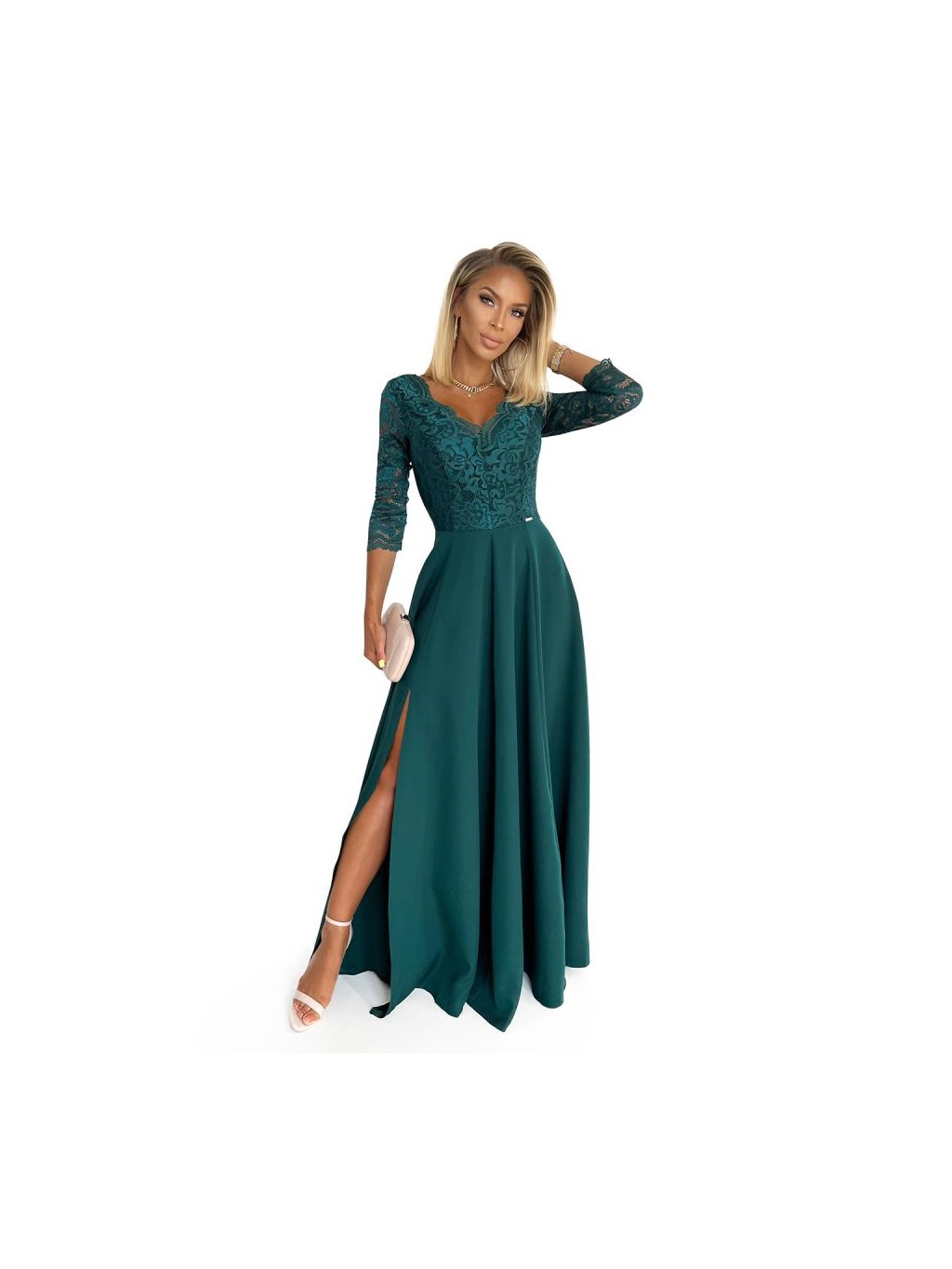 309-5 AMBER elegantní krajkové dlouhé šaty s výstřihem - zelené