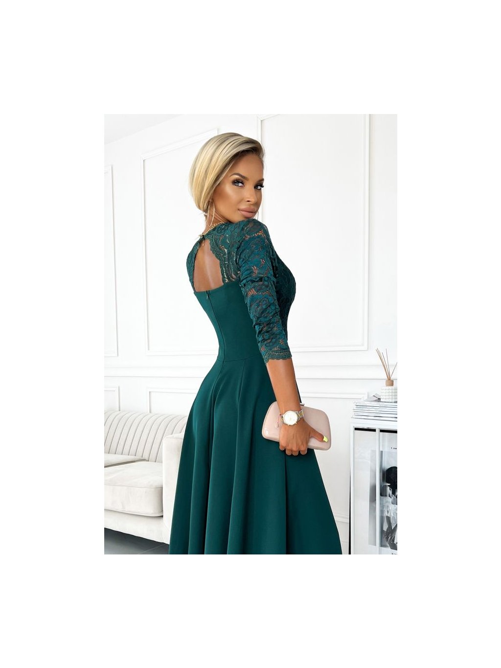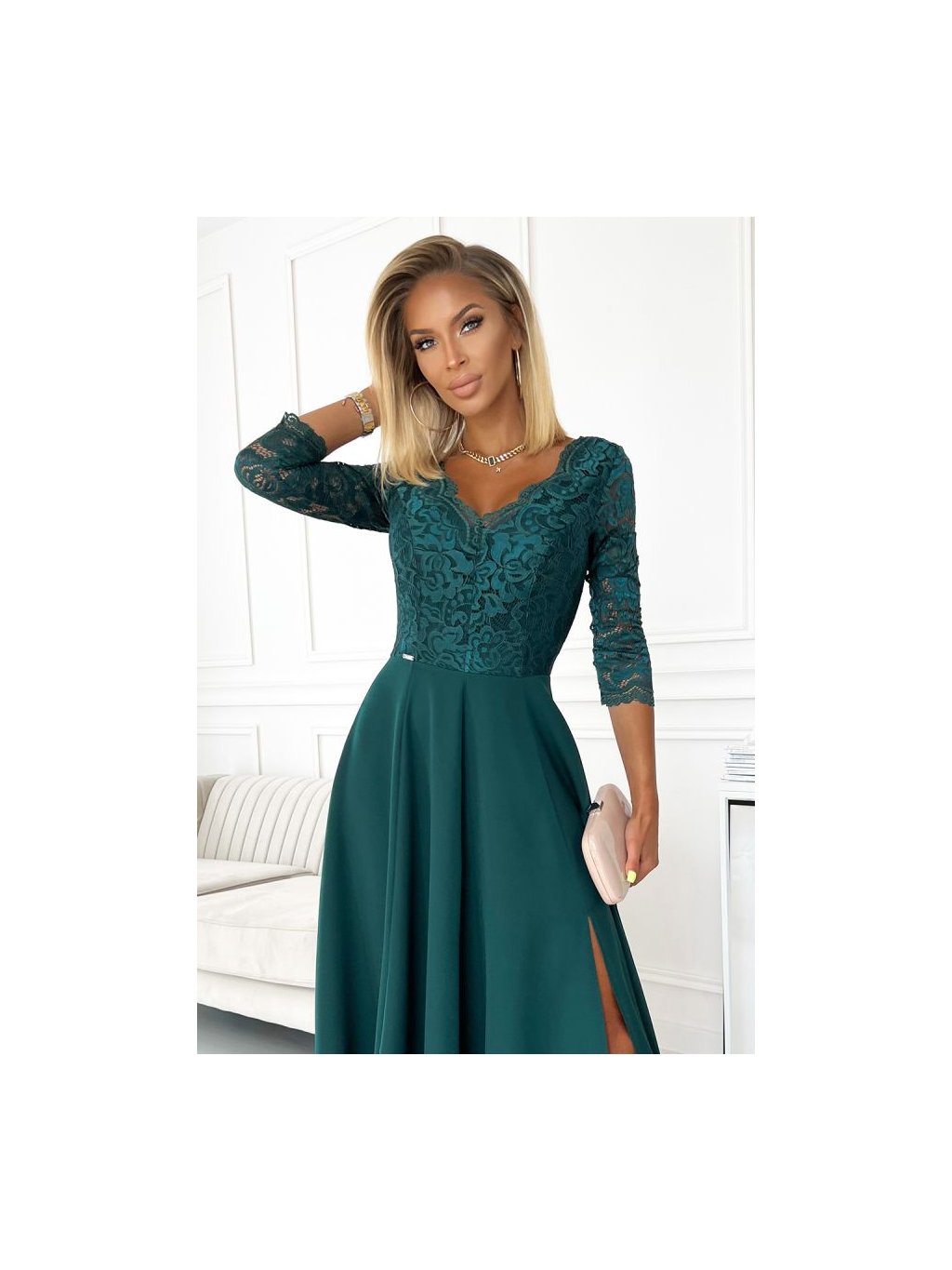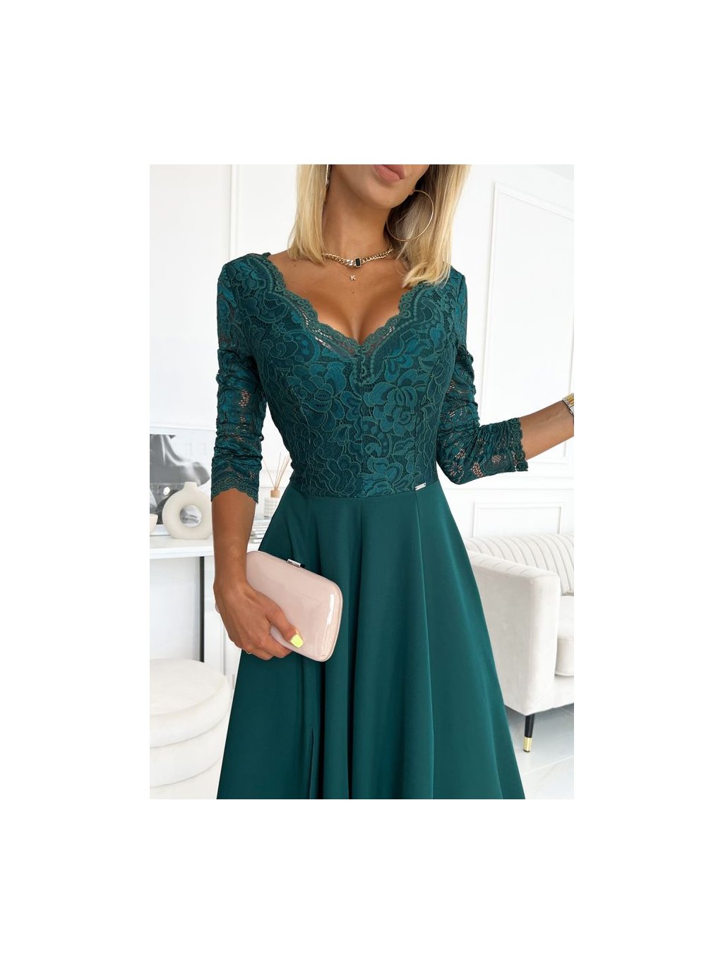 309-5 AMBER elegantní krajkové dlouhé šaty s výstřihem - zelené
