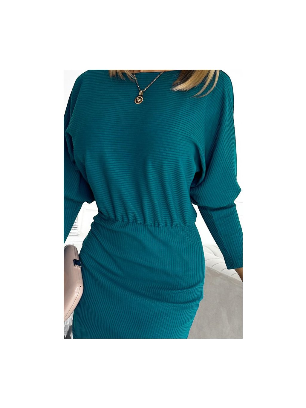 Lara - Žebrované šaty s manžetami na rukávech. Barva moře. Vyrobeno z příjemného na dotek, pružného materiálu. Polská výroba. Značka Numoco .
