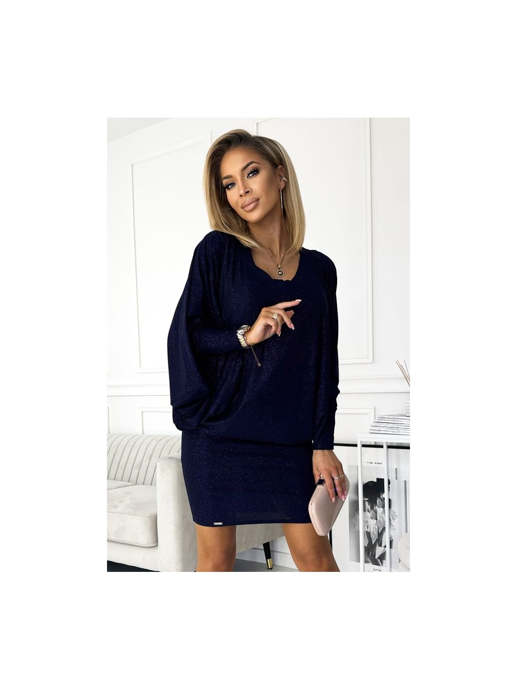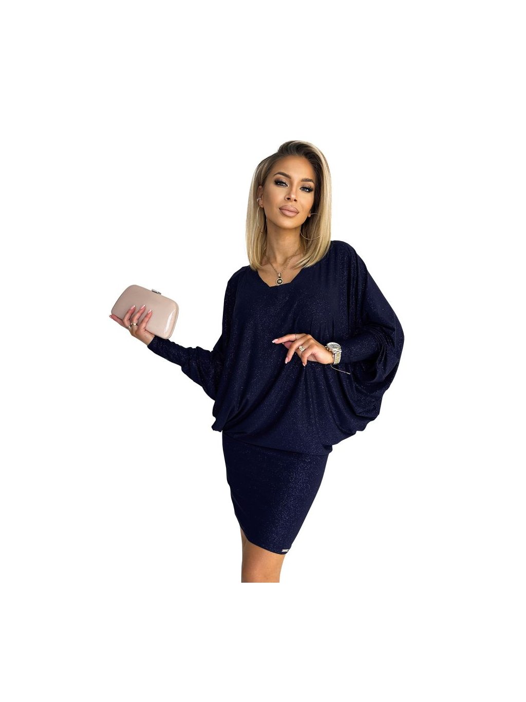 402-1 Netopýří šaty s výstřihem - tmavě modrá se třpytkami