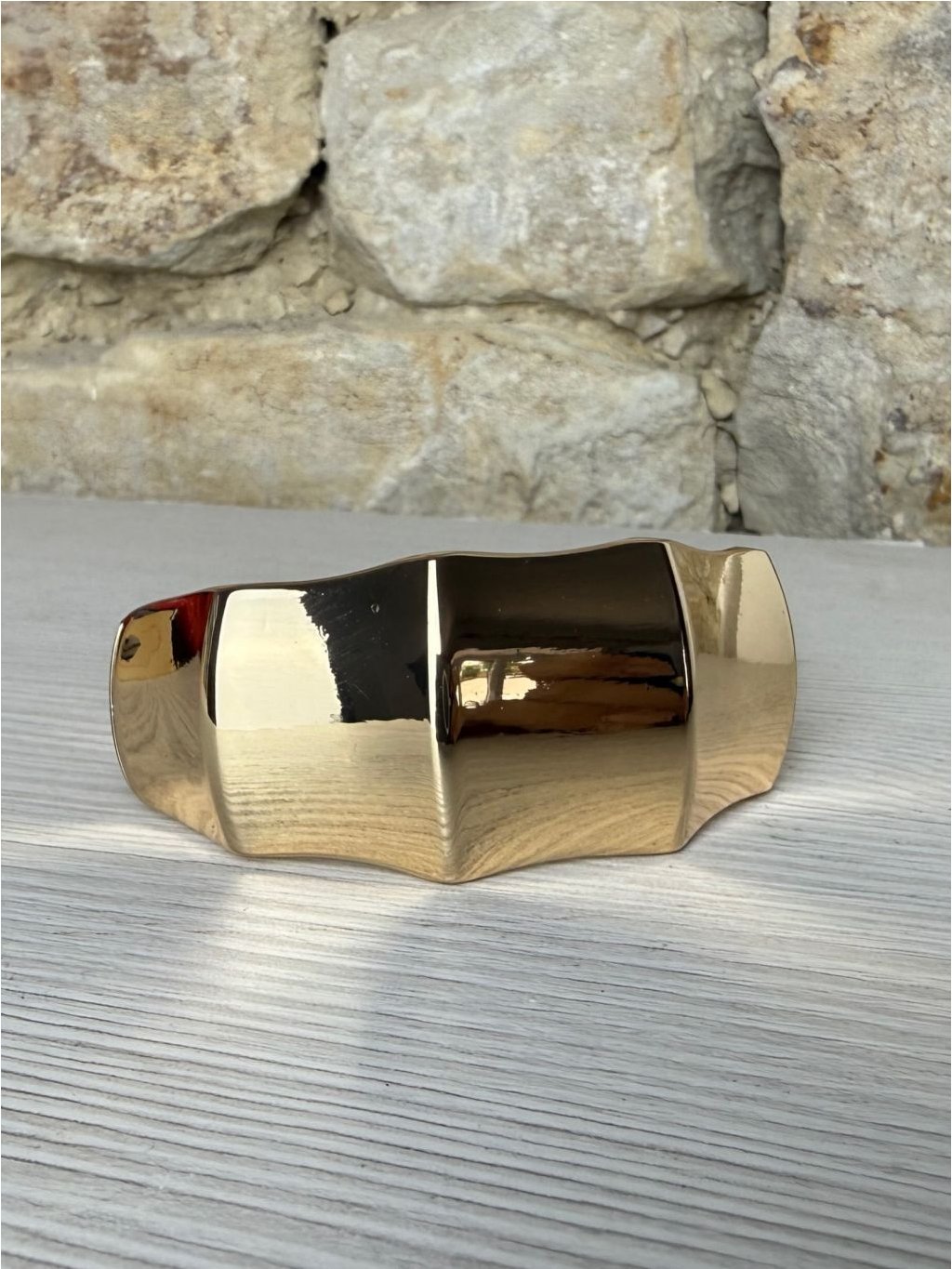 Elegantní módní náramek ve zlatém odstínu. Výrazný a luxusně působící doplněk, který krásně vynikne na ruce. Pevné zapínání, velmi pěkný stav. Skvělý na společenské události i k oživení jednoduchého outfitu.