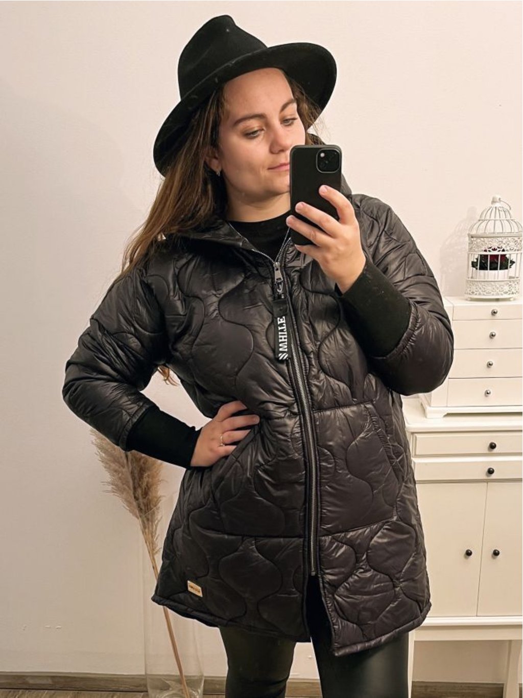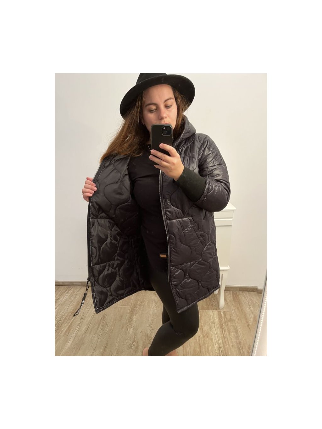 Bunda je vhodná na přechodné období podzim a jaro a teplou zimu. Je prošívaná vyteplená, bez podšívky, lehoučká. Se svetrem se dá nosit celou zimu nad 0 stupňů. Na rukávu dlouhé manžety, kapsy.
