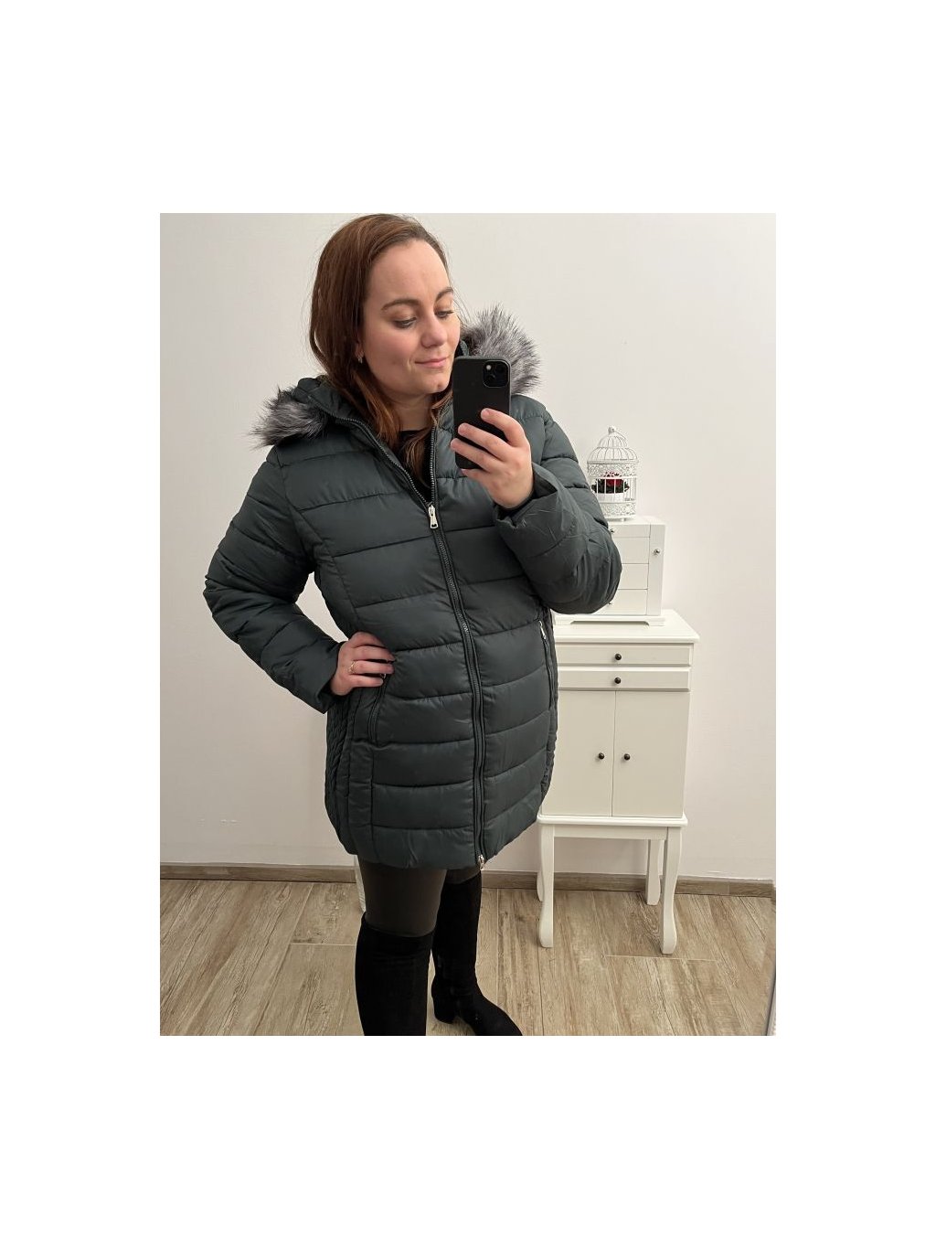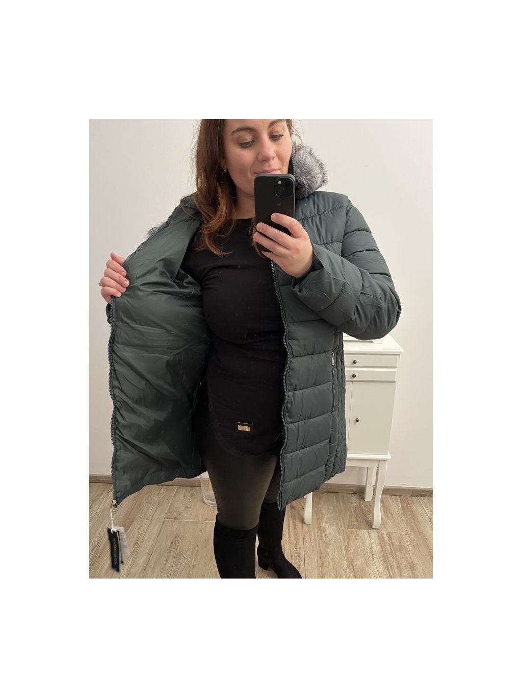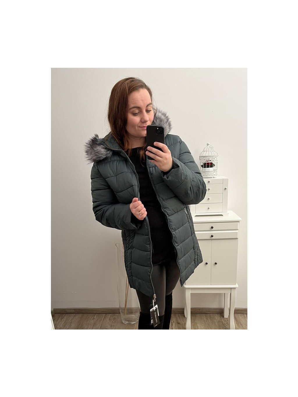 Zimní dámská bunda s kapucí zdobená kožíškem. Prošívaná, není již zateplená žádnou podšívkou.