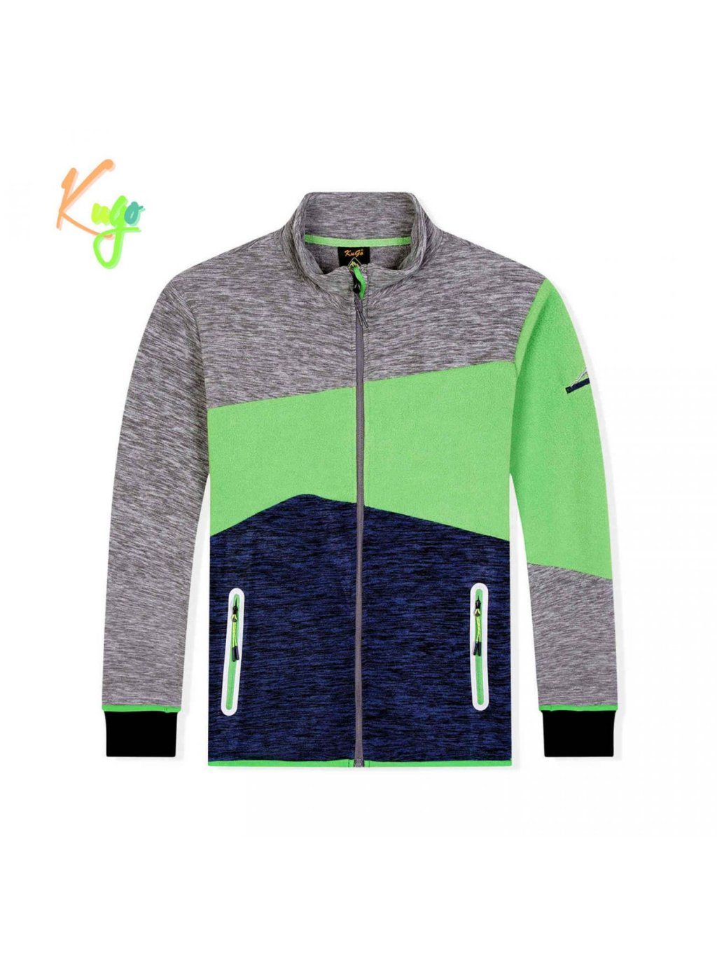 Chlapecká teplá flísová flaušová mikina, na zip ke krku, bez kapuce, dvě zapínací kapsy na přední straně, funkční náplet o rukávu s otvorem na palec.
