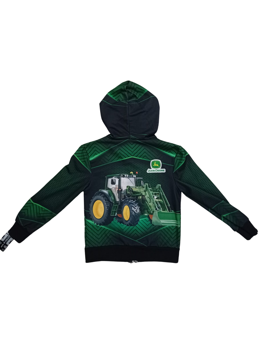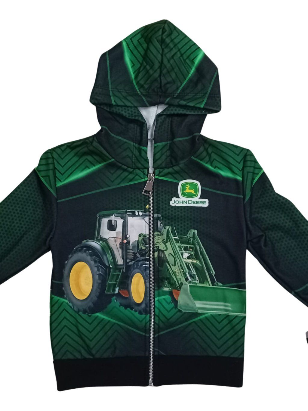 Mikina je vyrobena z měkkého a příjemného materiálu, který bude vaše dítě bavit i v chladných dnech. Má kapuci přes hlavu, která ho ochrání před větrem a deštěm. Na přední straně má velký motiv traktoru, který bude vaše dítě bavit.