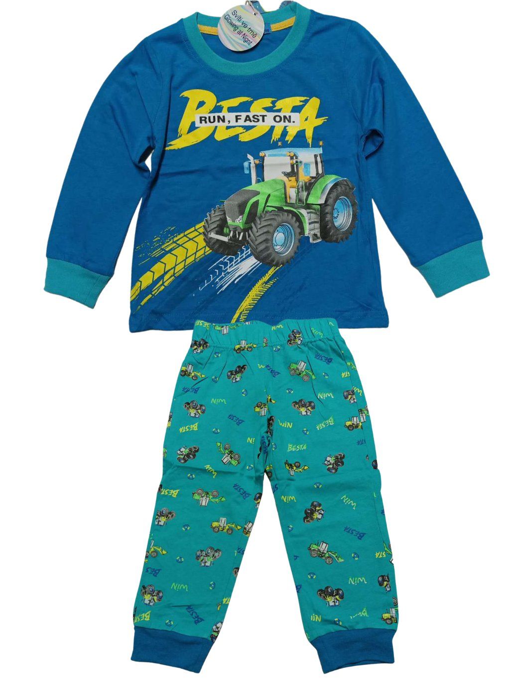 Bavlněné Chlapecké pyžamo Svíticí ve tmě, s dlouhým rukávem a dlouhámi nohavice dole do rantlu. Velikosti odpovídají.
