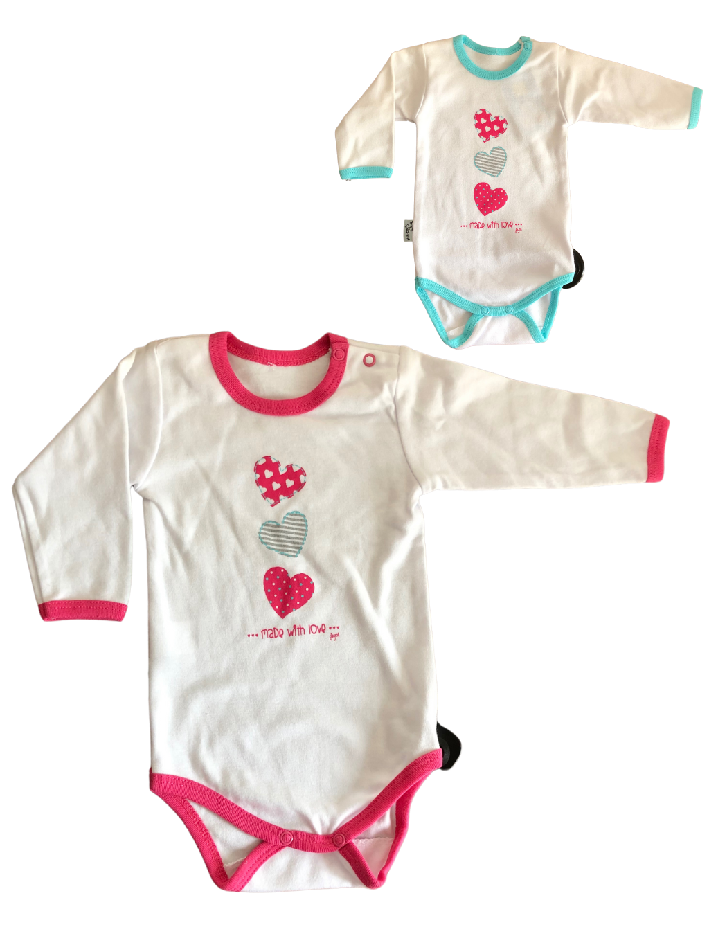 Bavlnéné bodýčko pro miminka s dlouhým rukávem, zapínaní u krku na patentky. ČESKÁ VÝROBA