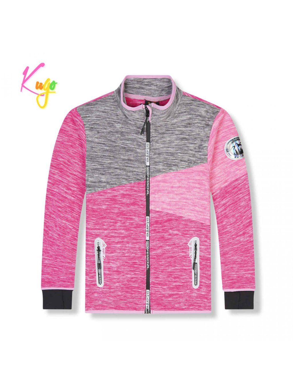 Dívčí teplá flísová flaušová mikina, na zip ke krku, bez kapuce, dvě zapínací kapsy na přední straně, funkční náplet o rukávu s otvorem na palec.