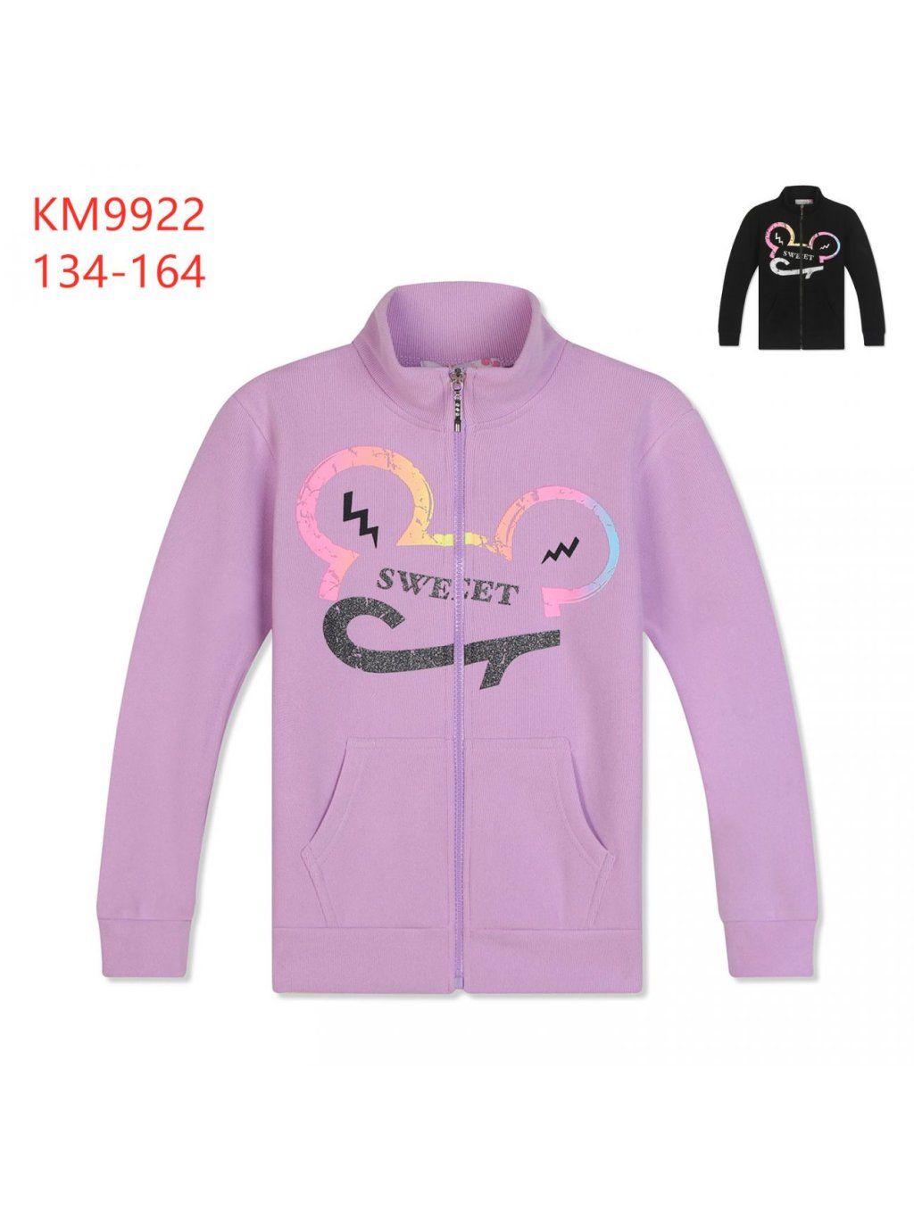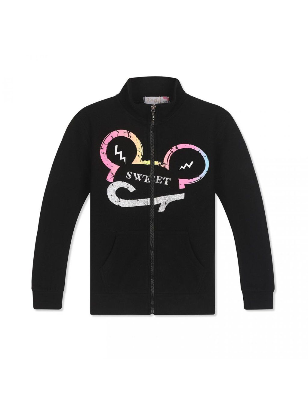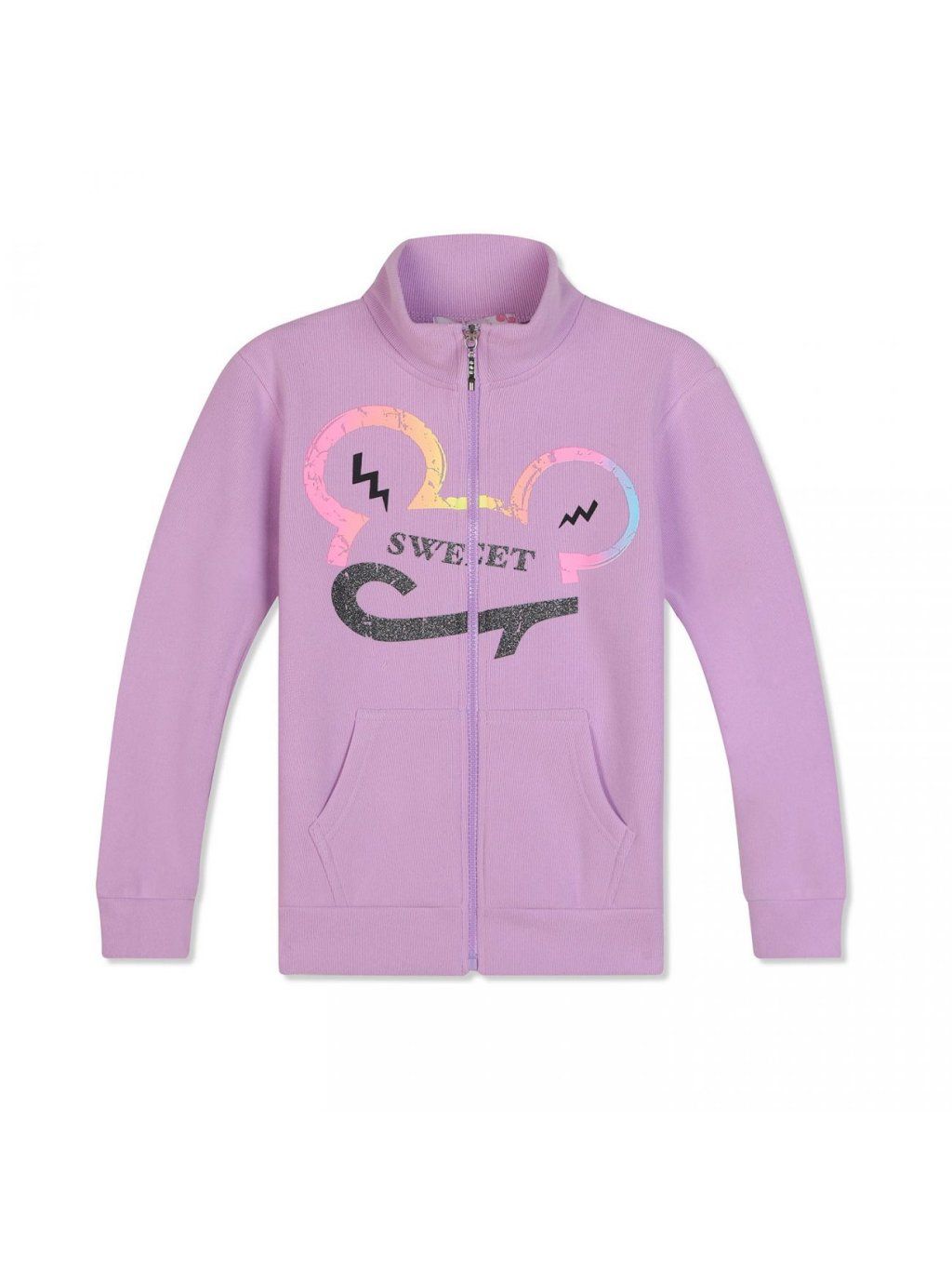 Dívčí teplá mikina na zip bez kapuce se stojáčkem.