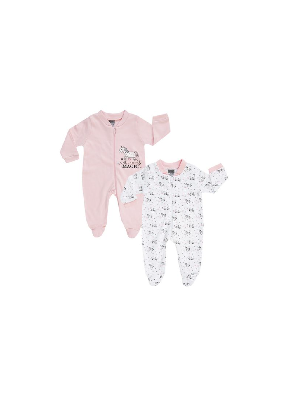 Dívčí bavlněný overal na zip, vhodný na spinkání, balený po 2 ks.