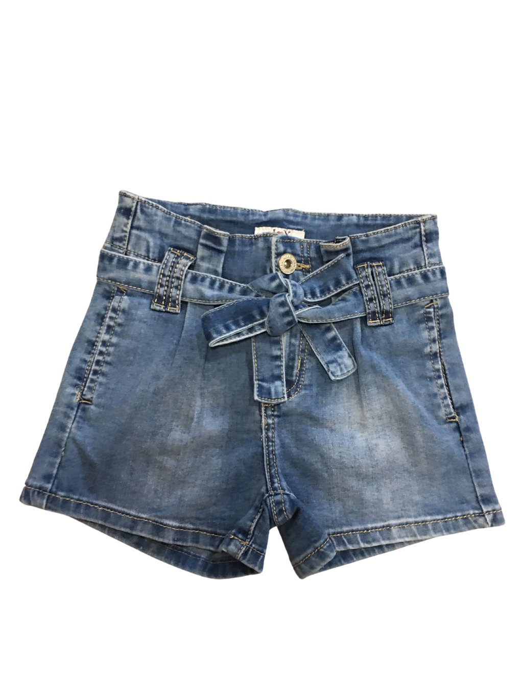 Dívčí stečové riflové kraťasy, s vyšším pasem, s mašlí, zapínání na kvoflik, v pase zevnitř gumička na stažení.