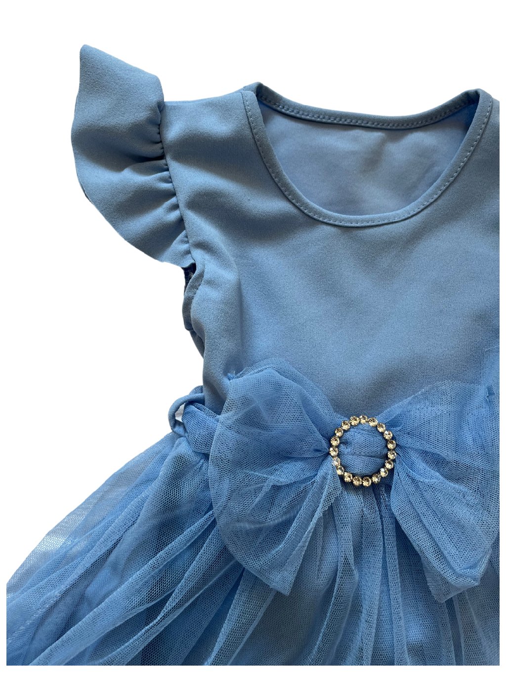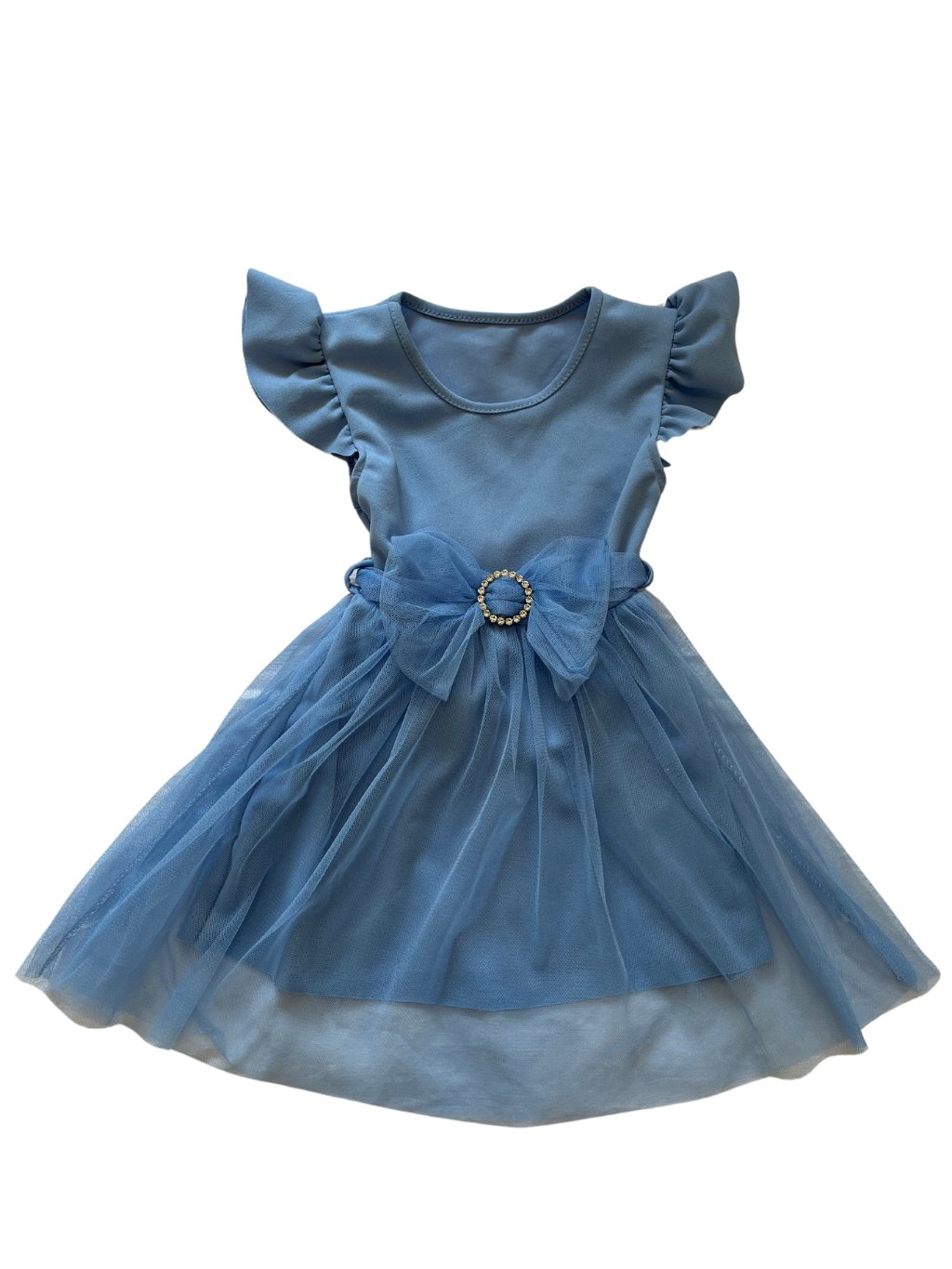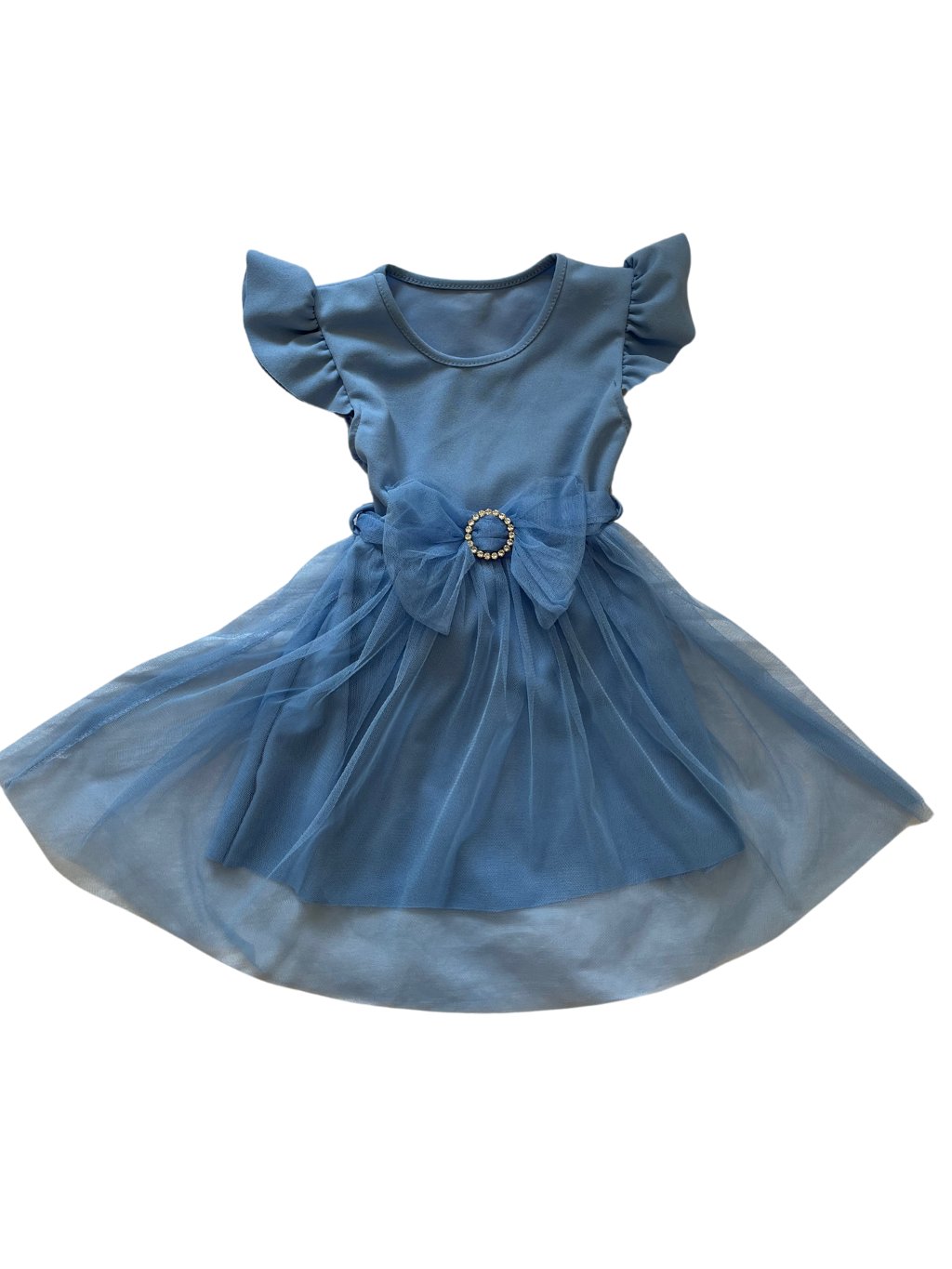 Dívčí šaty s volánky na rukávech, tylovou mašlí s vázáním dozadu a tylovou sukní.