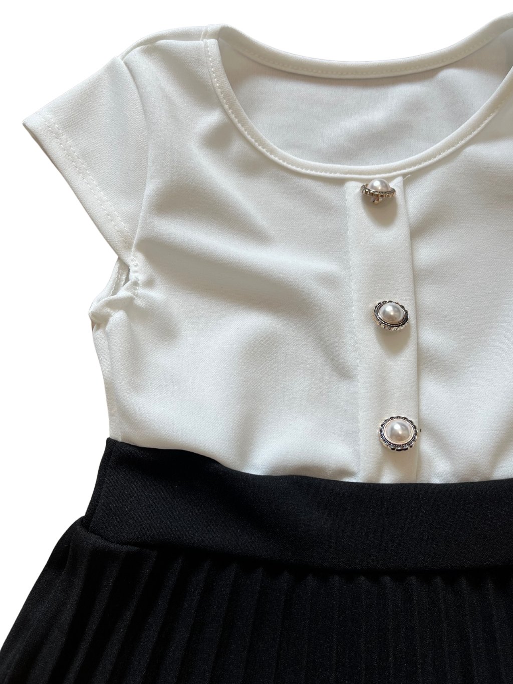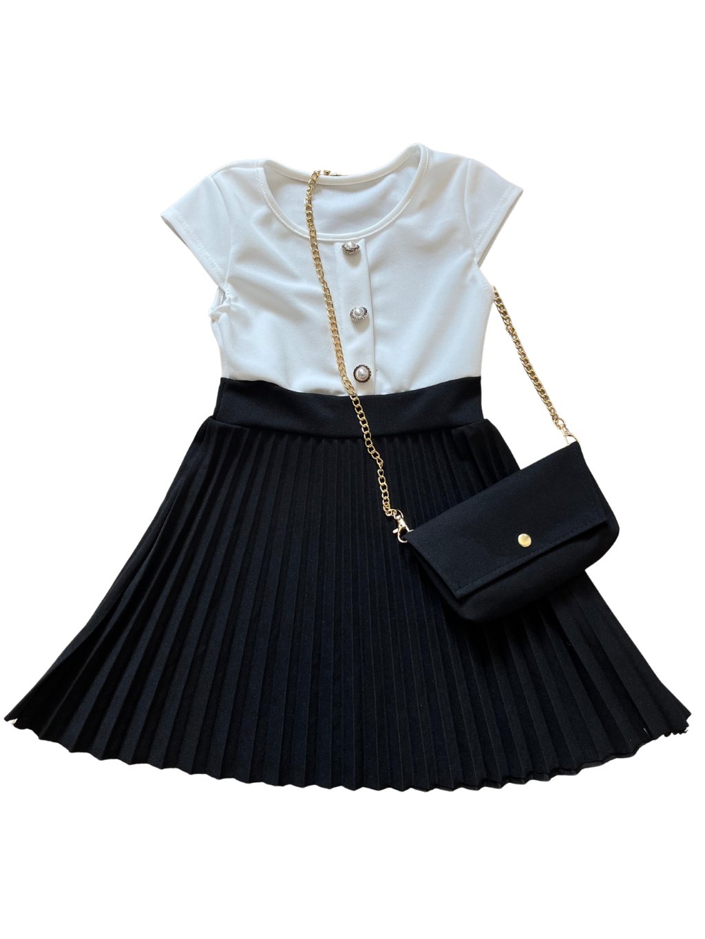 Dívčí šaty krátký rukáv, s dekoračním knoflíky, doplněno kabelkou