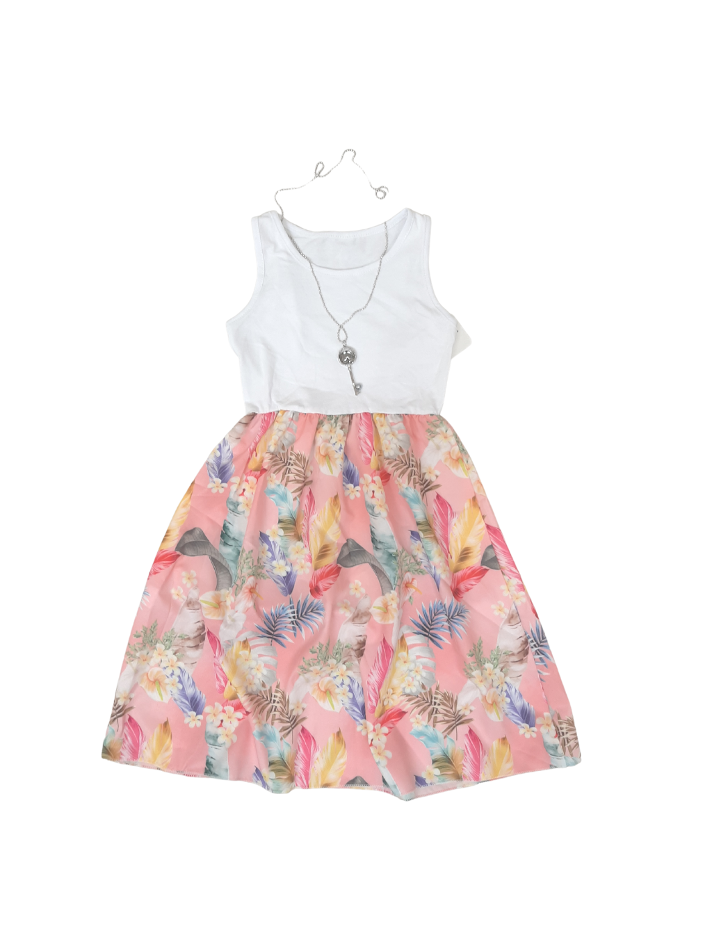 Dívčí dlouhé letní šaty s květinovým potiskem a řetízkem. Vzdušný materiál.