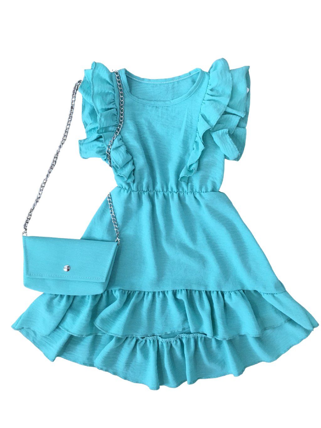 Dívčí letní šaty s volánky. Doplněny kabelkou.