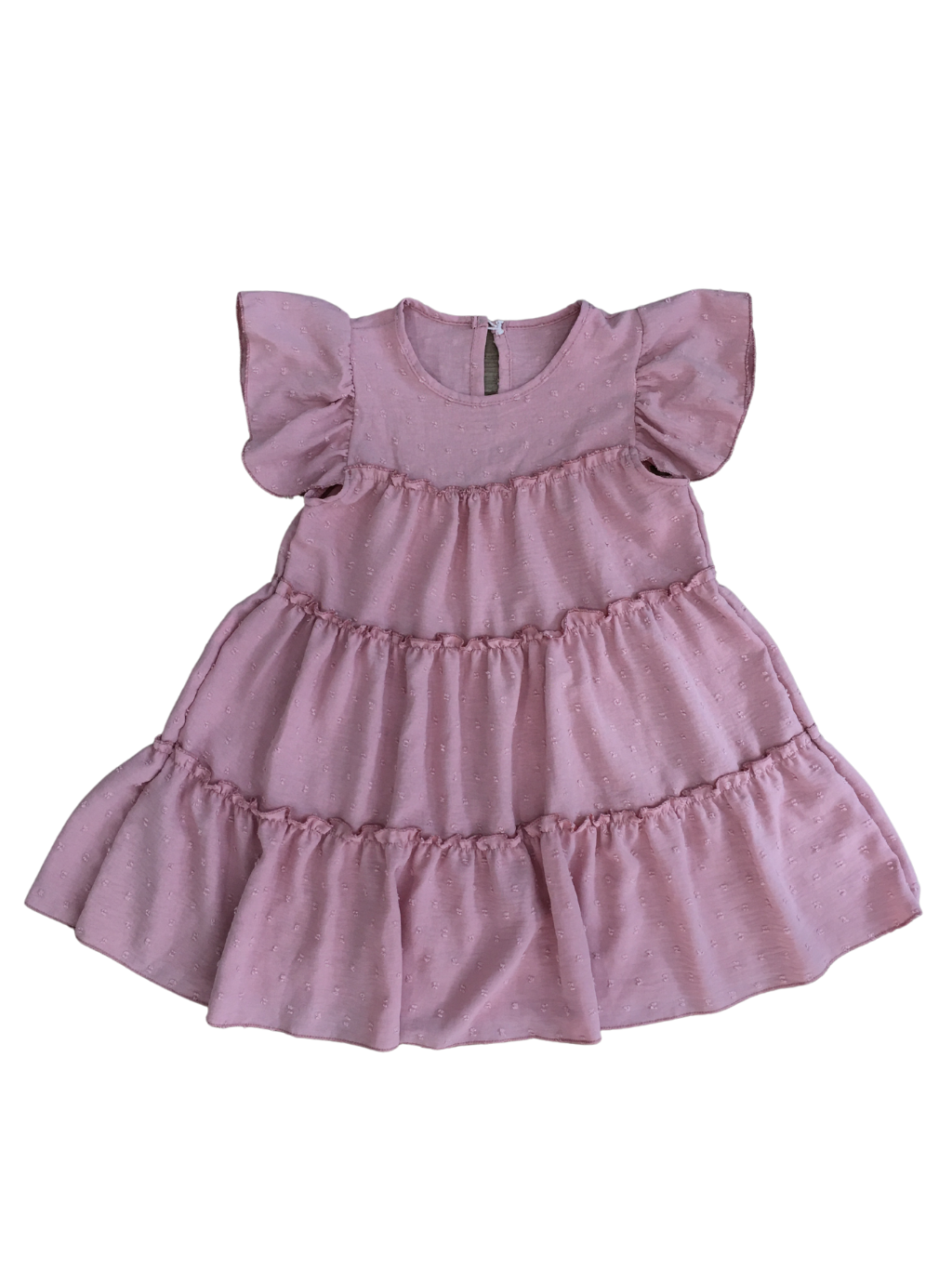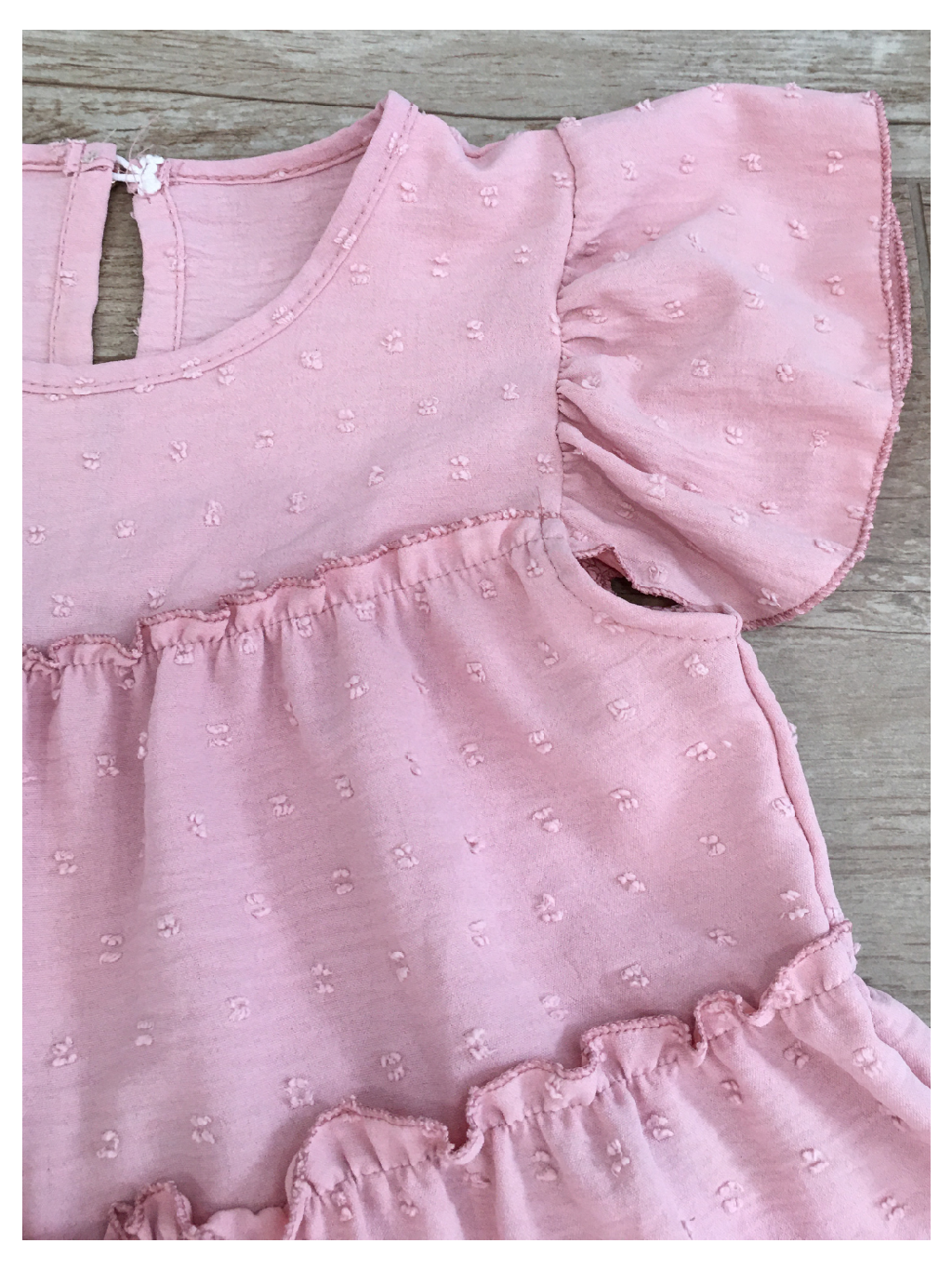 Dívčí letní šaty volnějšího střihu, krásně vlají a jsou vzdušné. Zdobené puntíky.