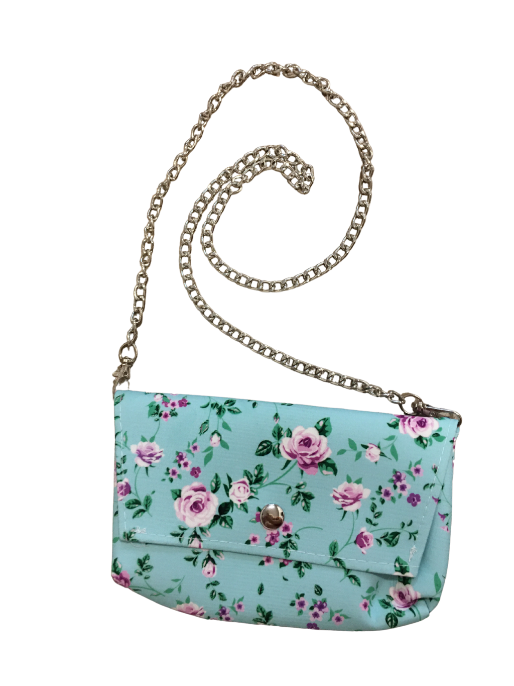 Dívčí letní šaty s volánky v květovaném vzoru. Doplněny kabelkou.