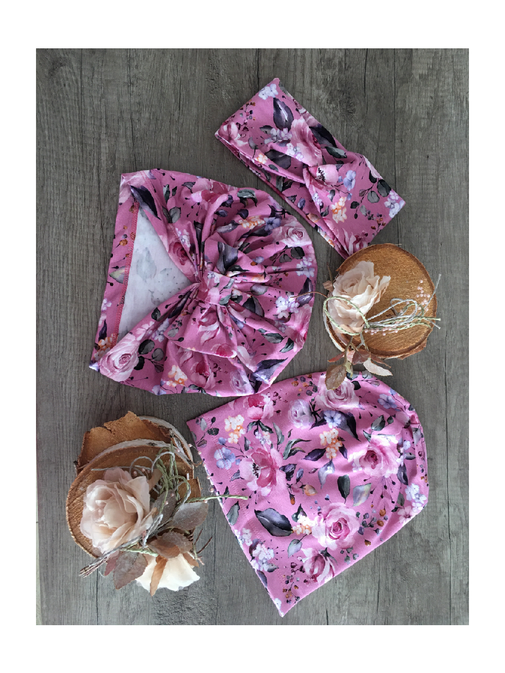 Bavlněná dívčí slabá čelenka vhodná na jaro a podzim s krásným květovaným vzorem, vhodá od 6 měsíců do 6 let, je velmi pružná.