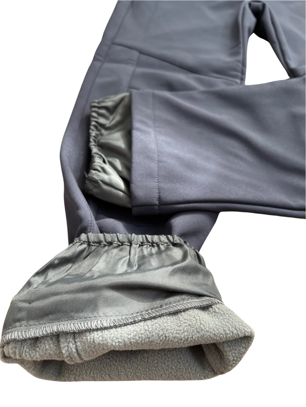 Kalhoty zateplené flaušem jsou vodoodpudivé (tzn voda po nich stéká, nevsakuje se), odolné proti větru, v pase do širšího nápletu, v polovině šířky nápletu je guma a tkanička na stažení, dole v nohavici šusťáková vsadka , která brání vniknutí vody a nečistot do bot, na přední straně dvě kapsy na zip reflexní prvky.
