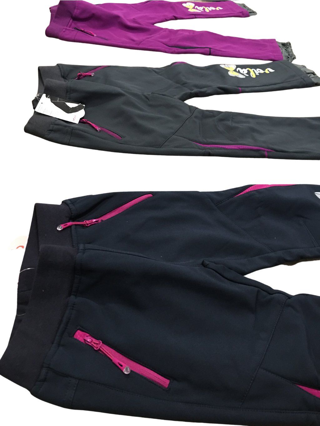 Kalhoty zateplené flaušem jsou vodoodpudivé (tzn voda po nich stéká, nevsakuje se), odolné proti větru, v pase do širšího nápletu, v polovině šířky nápletu je guma a tkanička na stažení, dole v nohavici šusťáková vsadka , která brání vniknutí vody a nečistot do bot, na přední straně dvě kapsy na zip reflexní prvky.