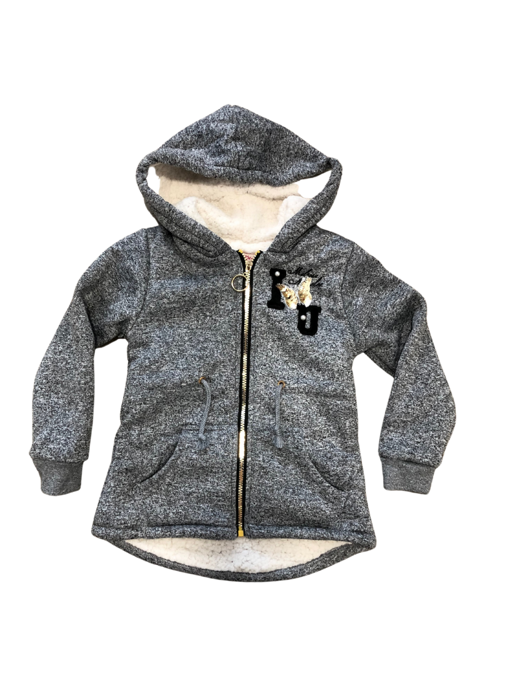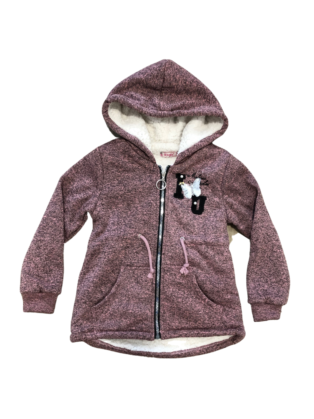 Dívčí prodloužená teplá mikina, zevnitře zateplená beránkem, s kapucí, kapsy.