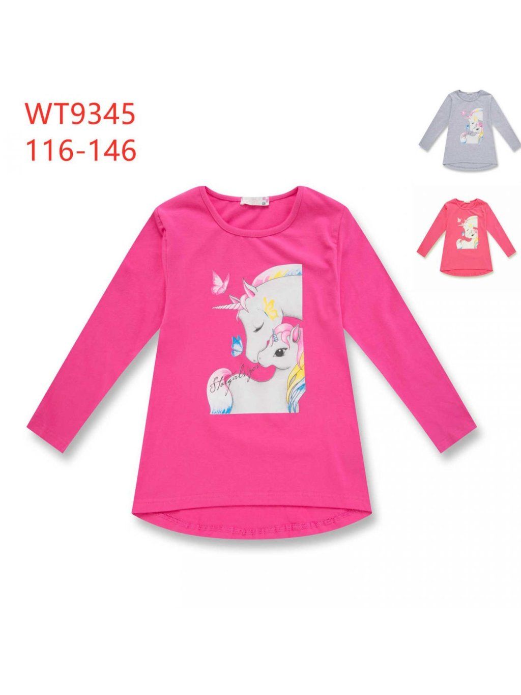 Dívčí tričko s dlouhým rukávem, s oblíbeným obrázkem jednorožce.