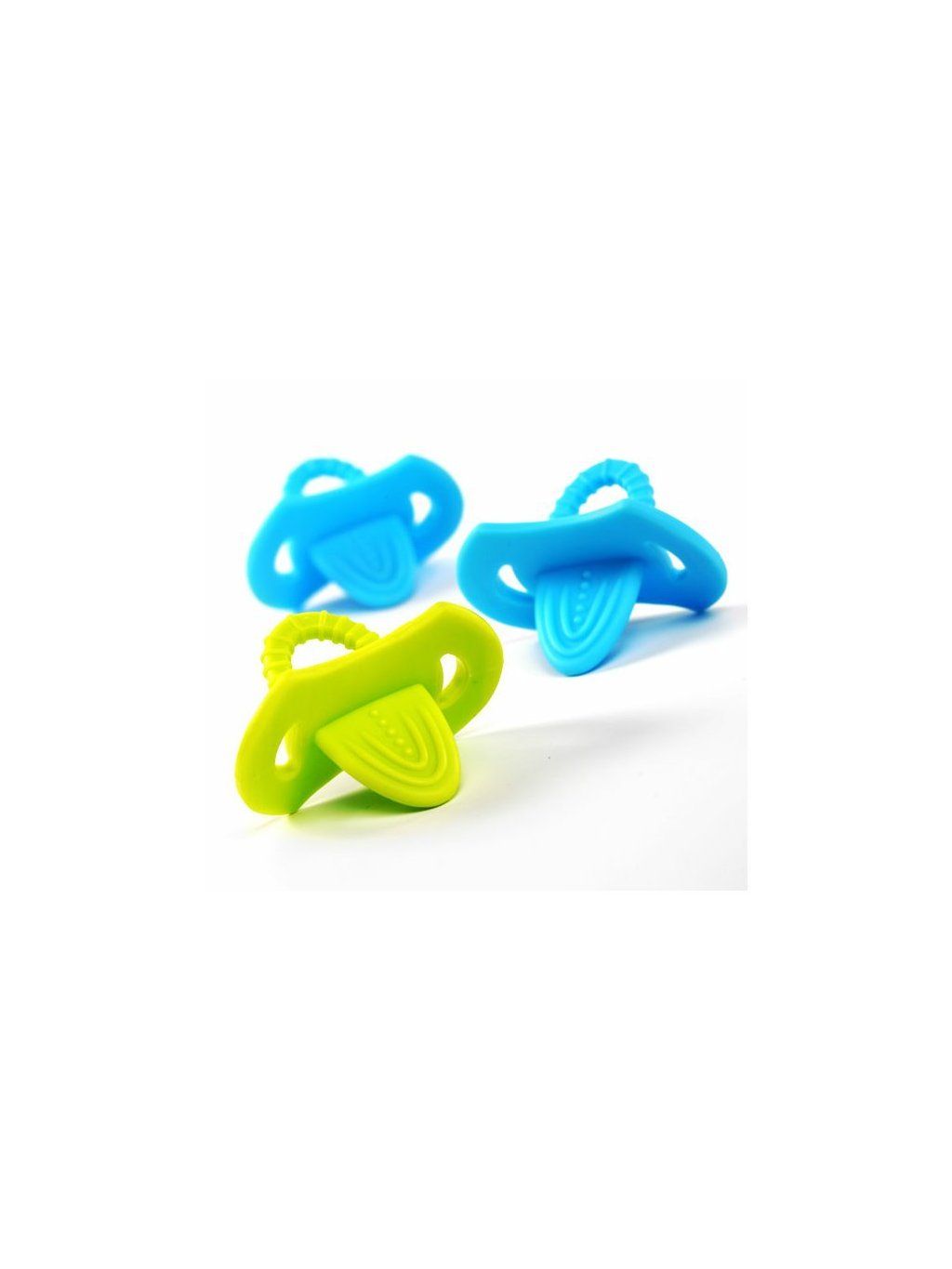 Kousátko elastické babyono 3m+, BPA FREE, barvy modrá a zelená.
