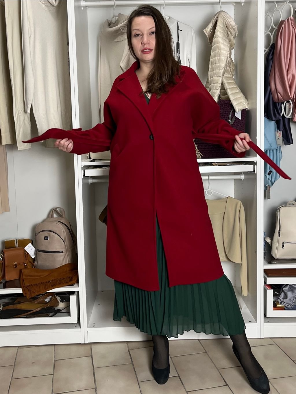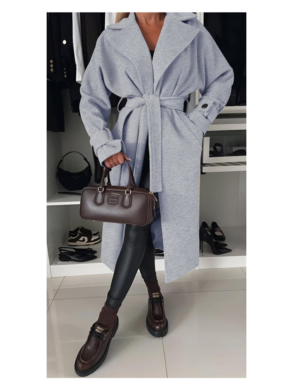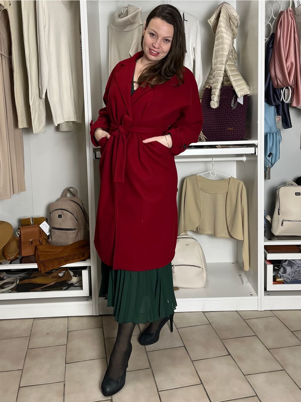 Flaušový kabát s páskem