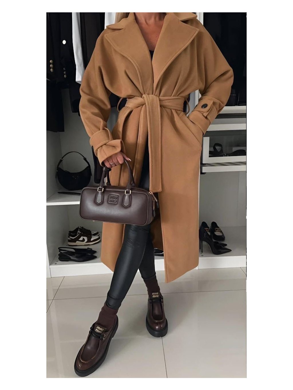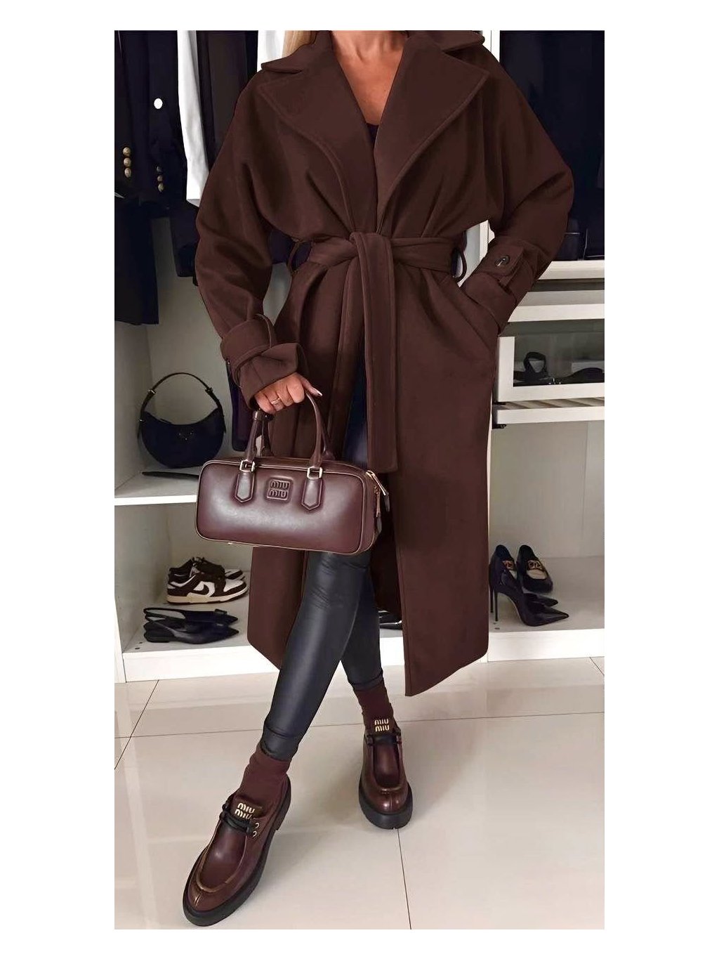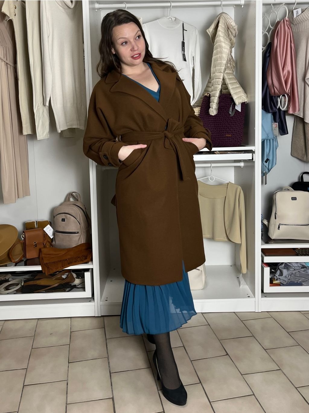 Flaušový kabát s páskem