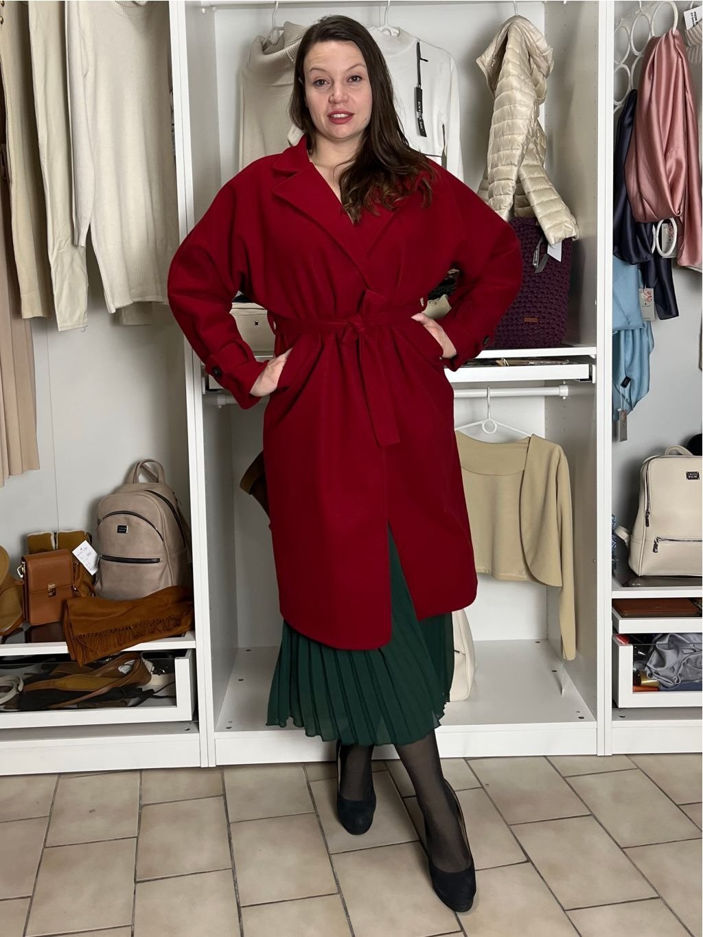 Rozměry: přes prsa: 120 cm, boky: 110 cm, délka: 108 cm