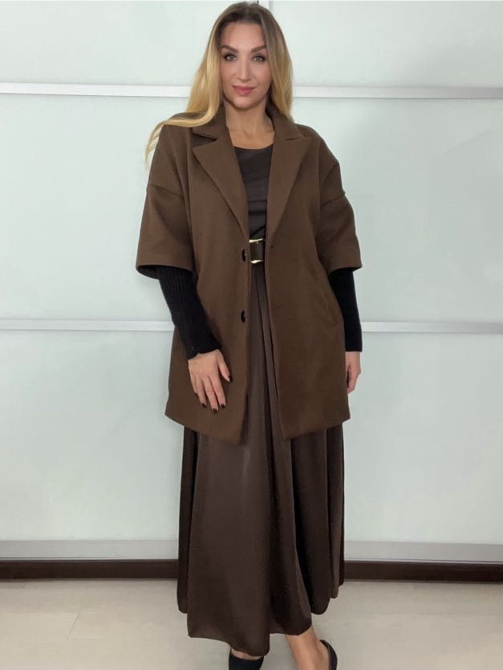 Kabát podzimní oversize na knoflíky dlouhý rukáv dámský (S/M/L ONE SIZE) ITALSKÁ MÓDA IMWCL252811/DU
