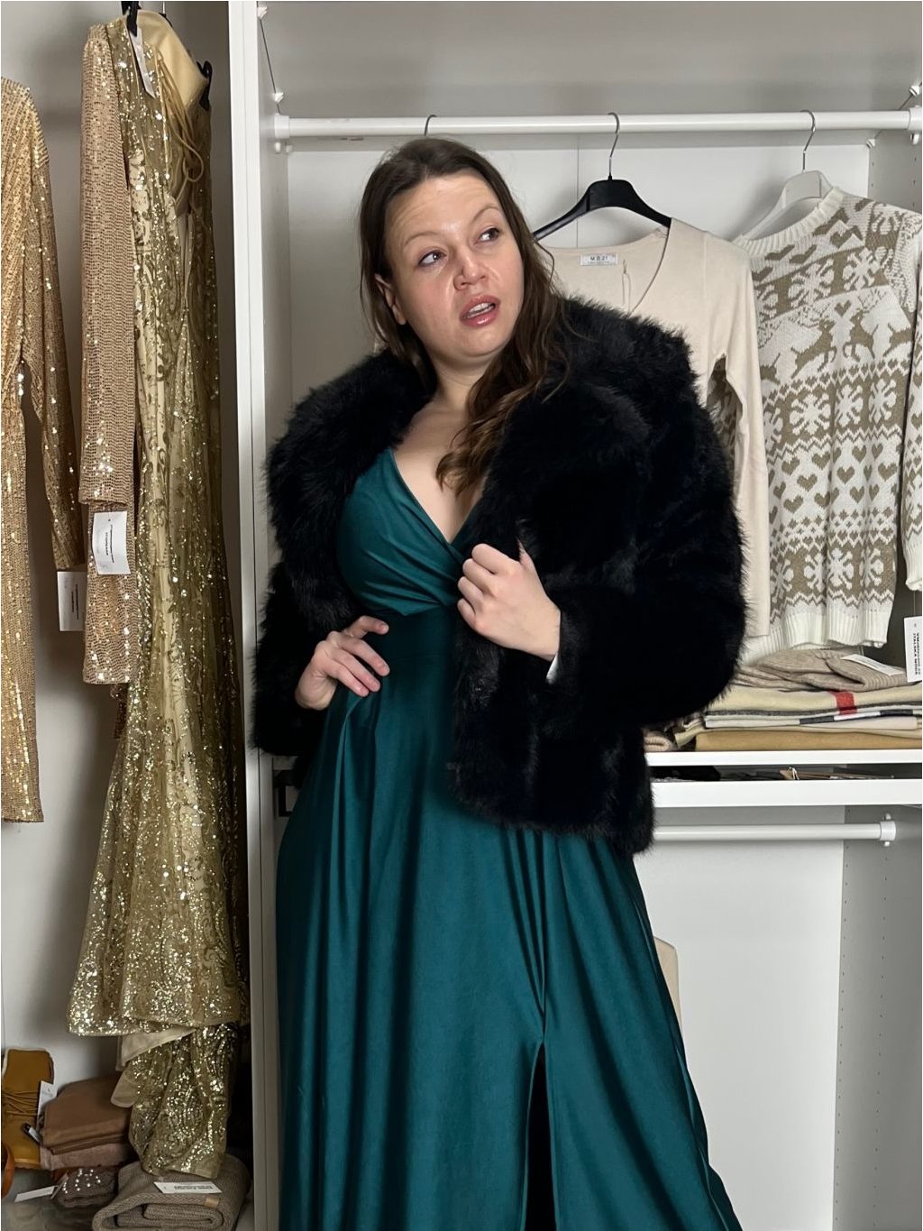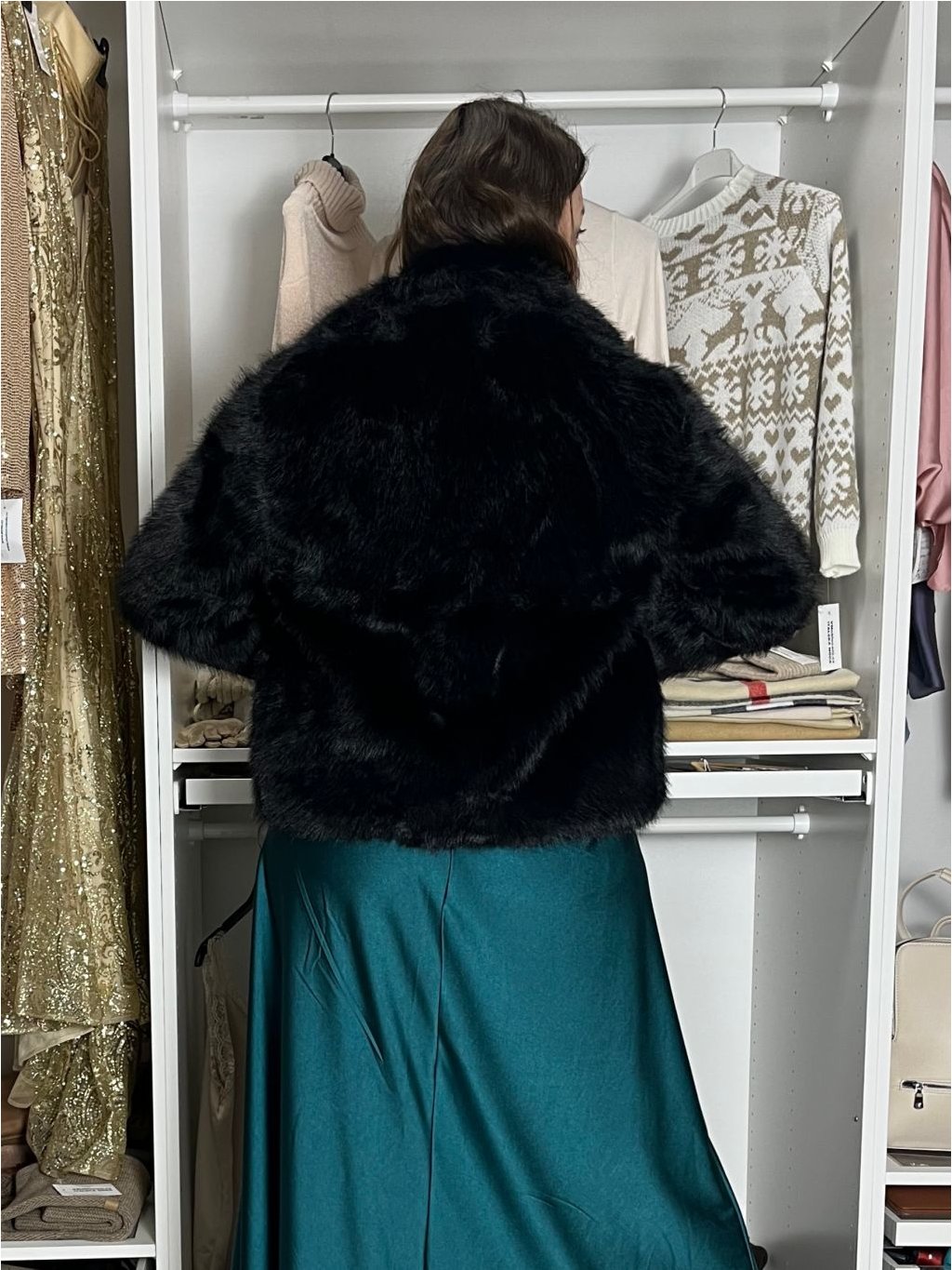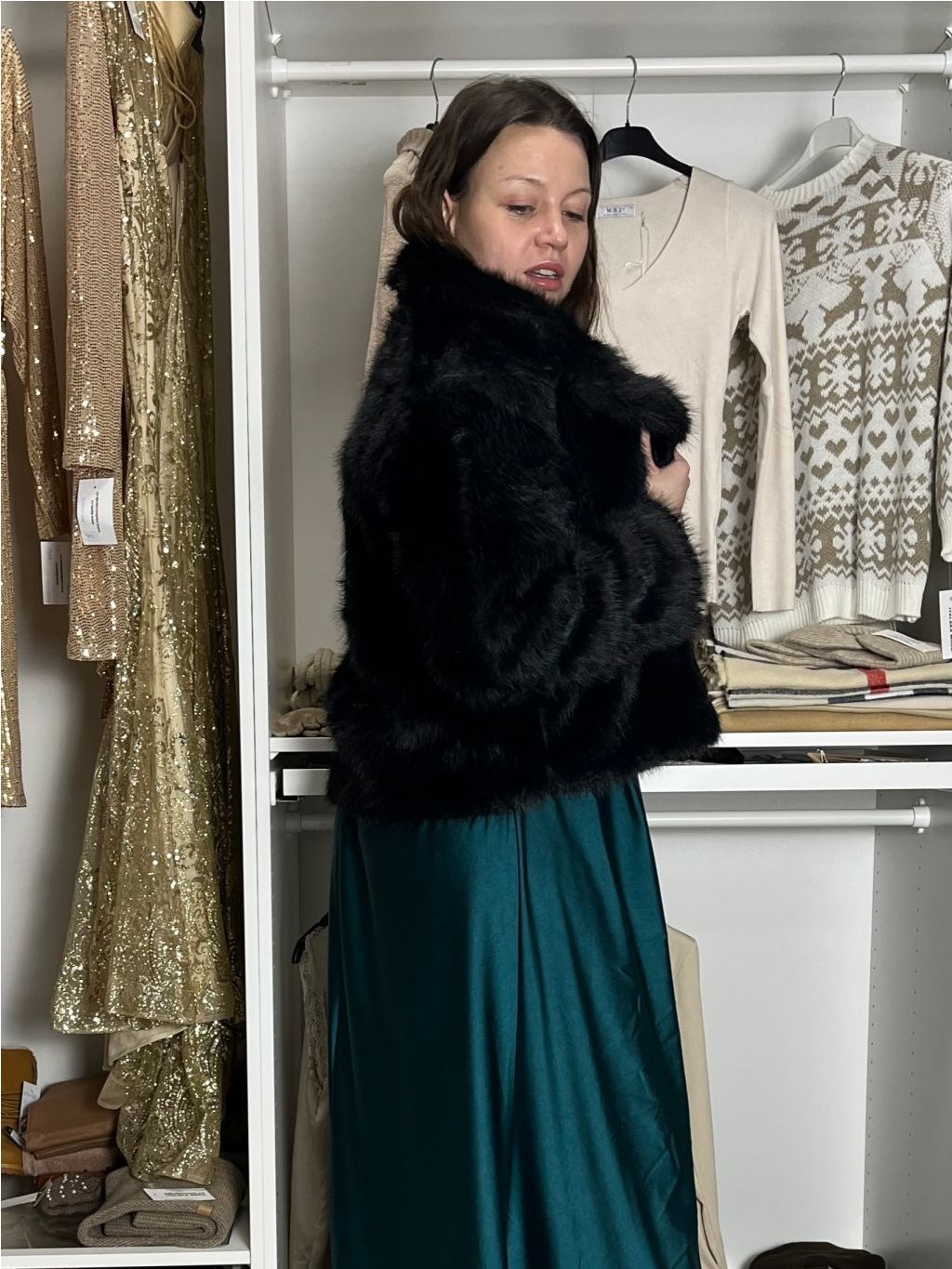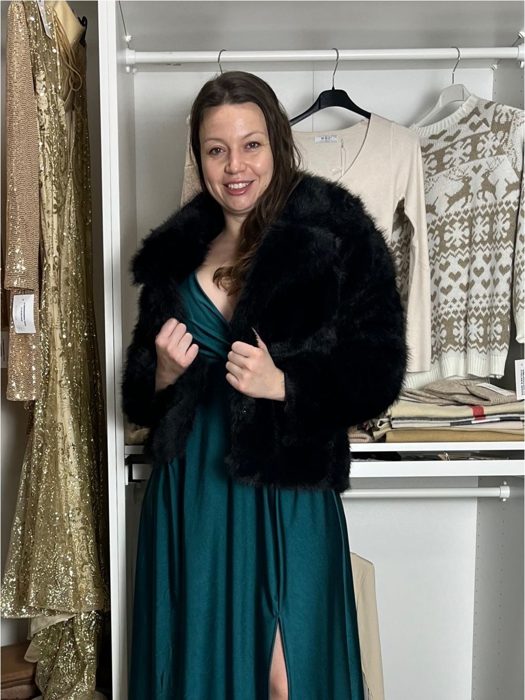 Luxusní krátký kožich s límcem (Faux Fur) Přidejte do svého šatníku dotek luxusu a hřejivého pohodlí s tímto krátkým kožichovým kabátkem.