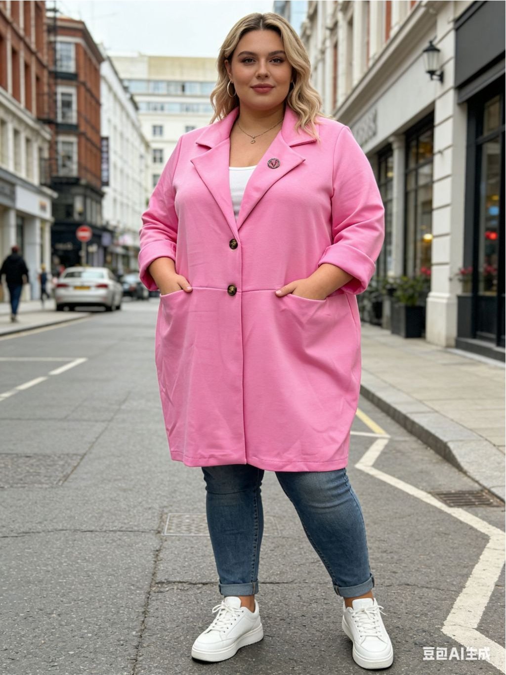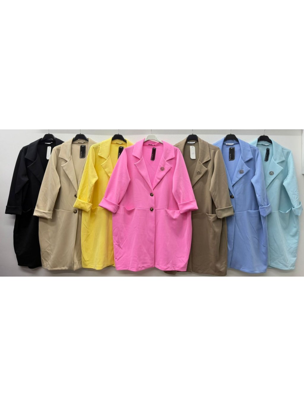 Kabátek slabý s kapsami na knoflíky dlouhý rukáv dámský nadrozměr (46/48/50 ONE SIZE) ITALSKÁ MÓDA IM426011