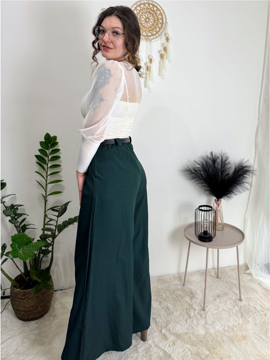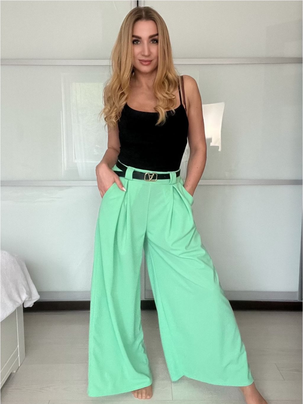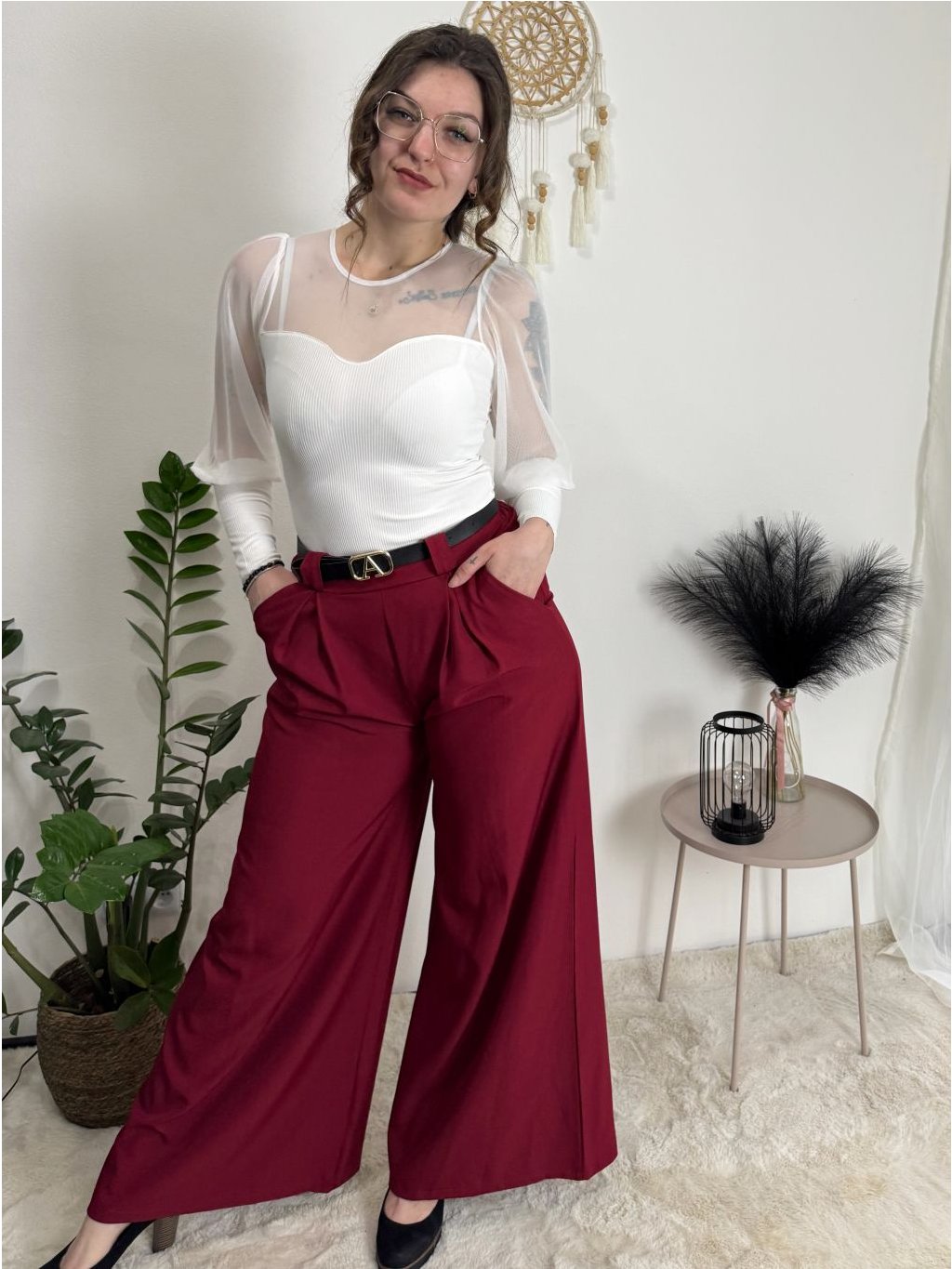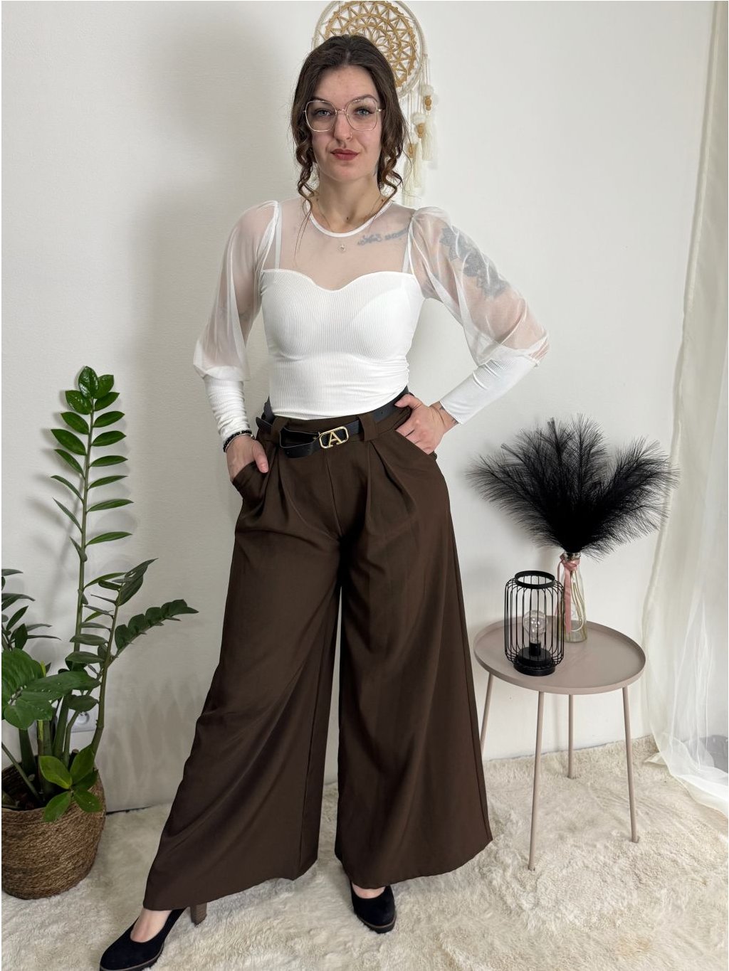 Široké elegantní kalhoty s páskem