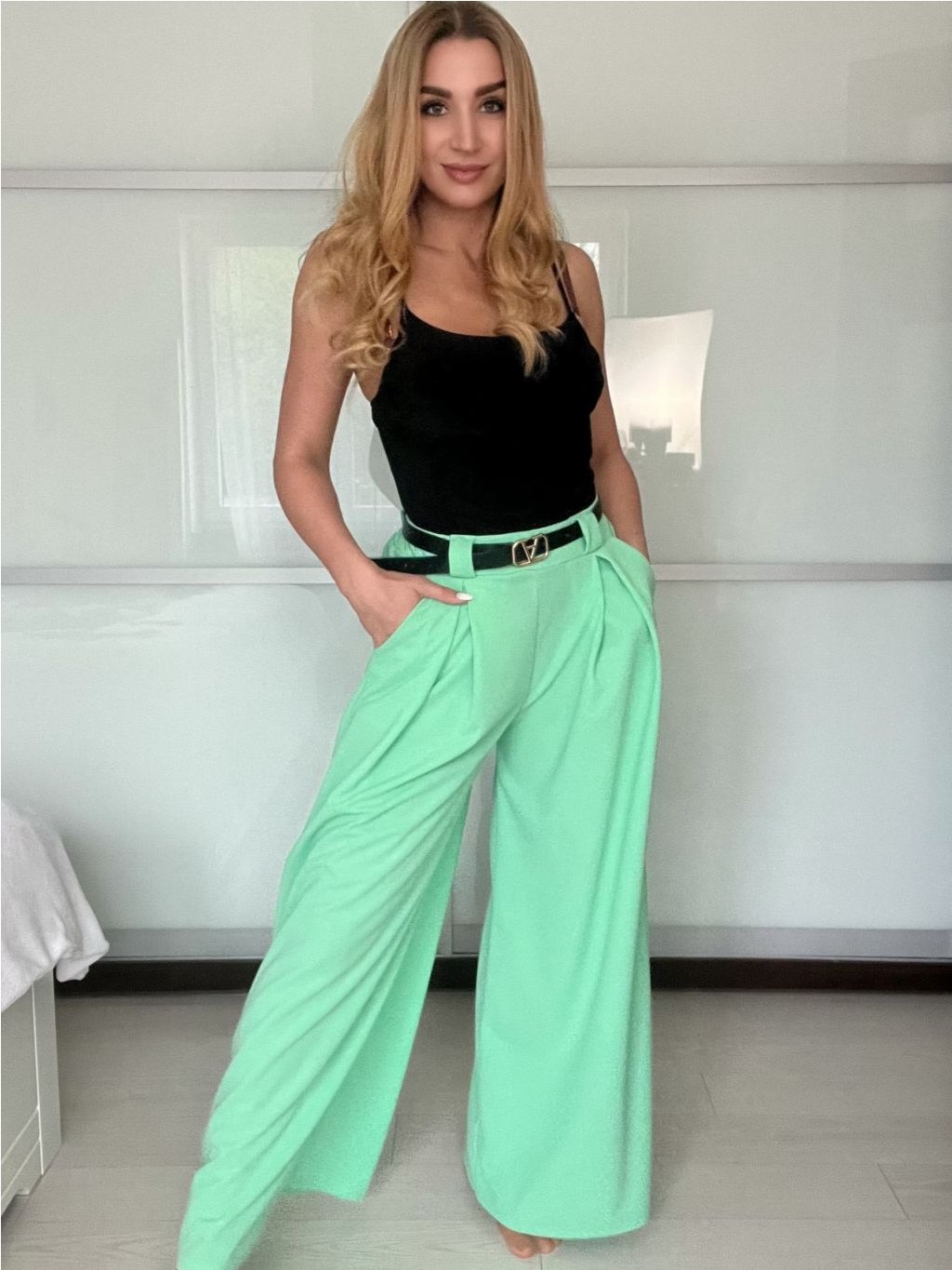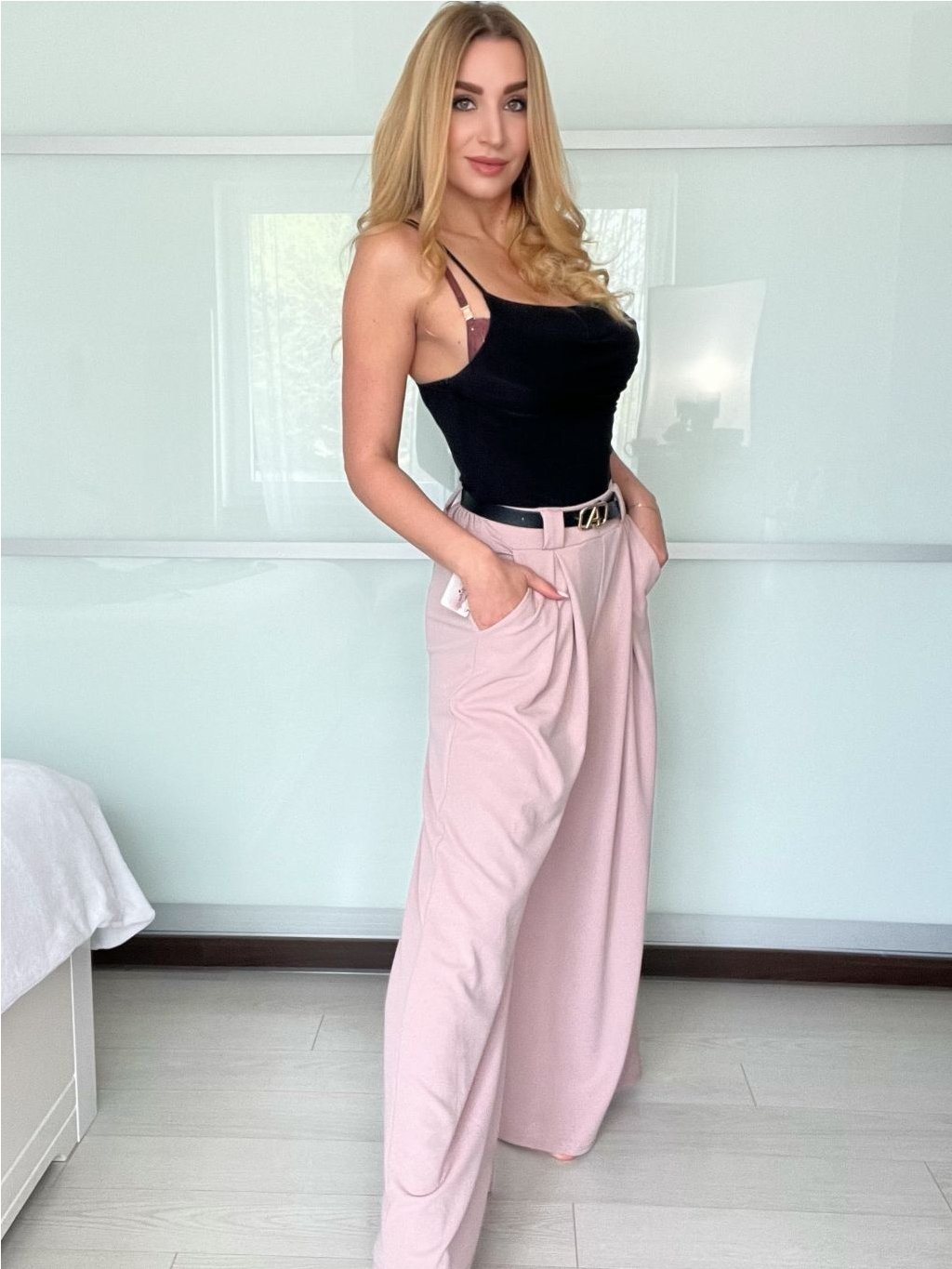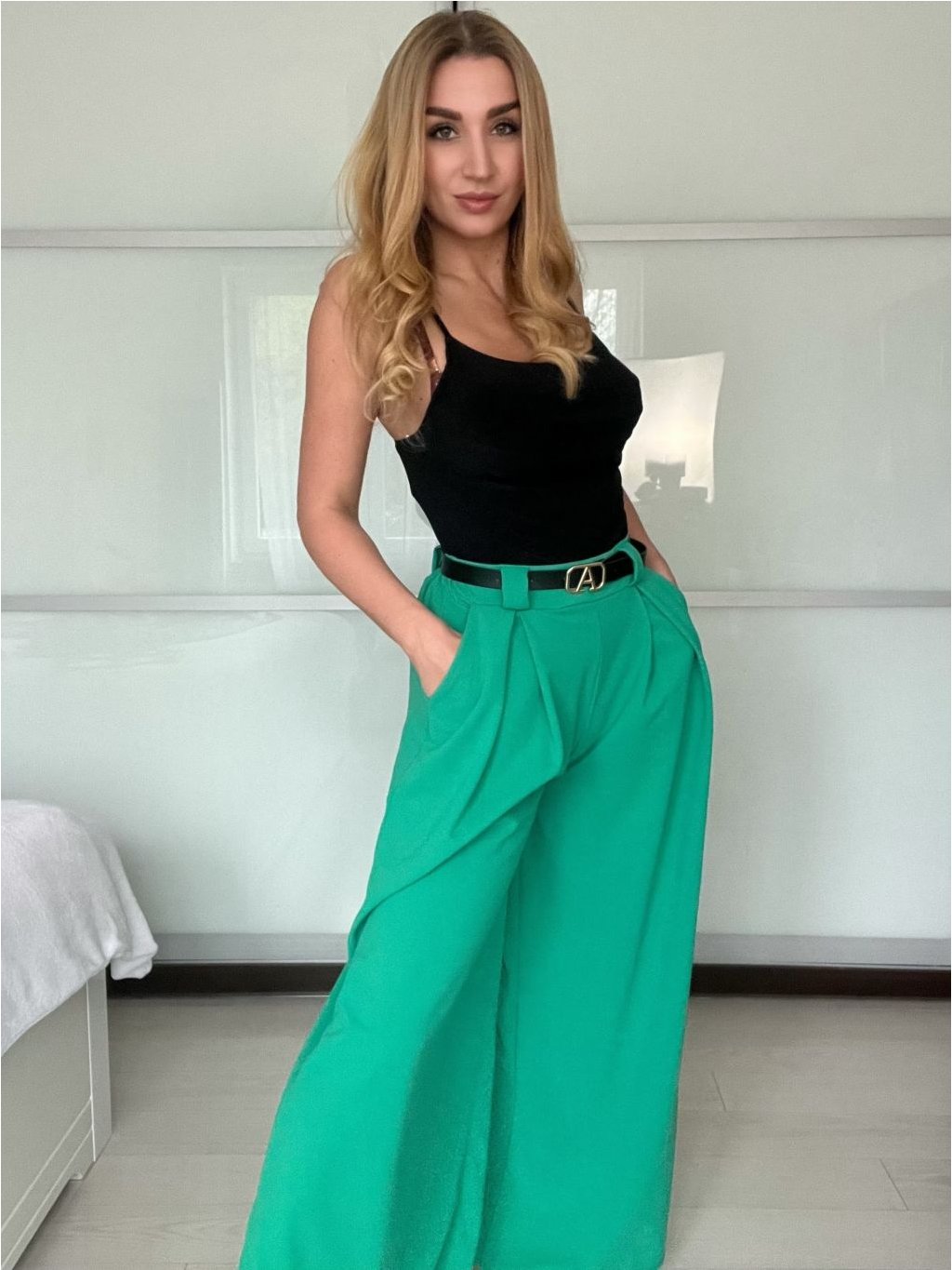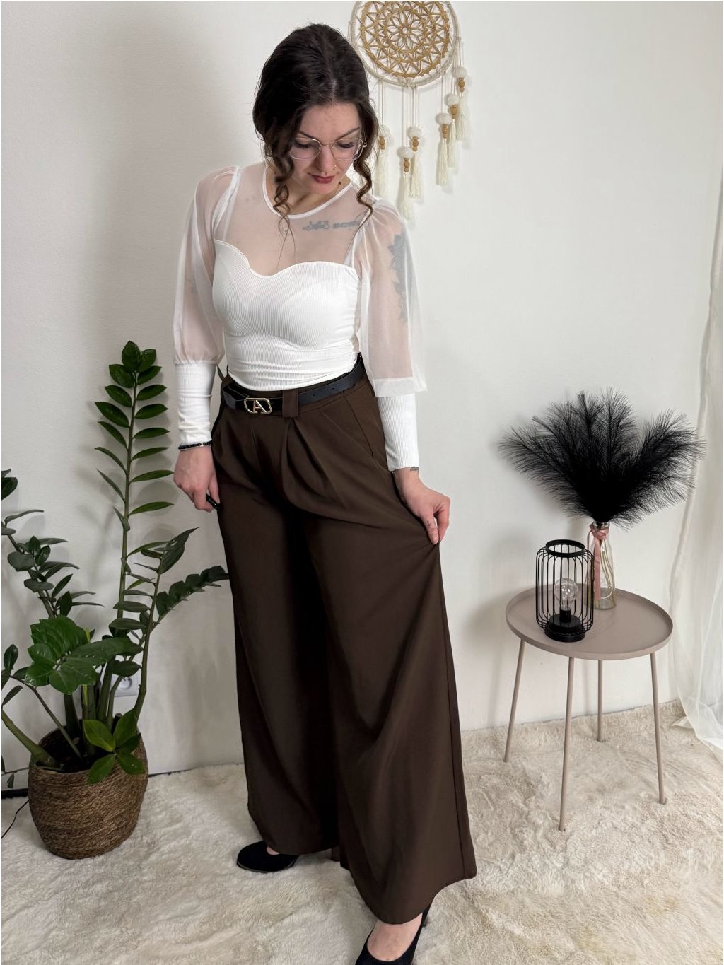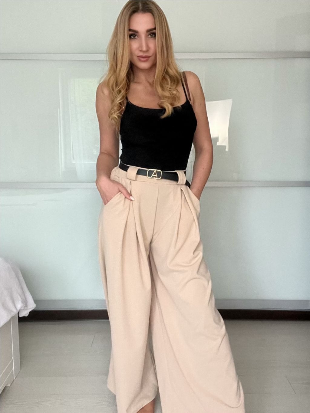 Široké elegantní kalhoty s páskem