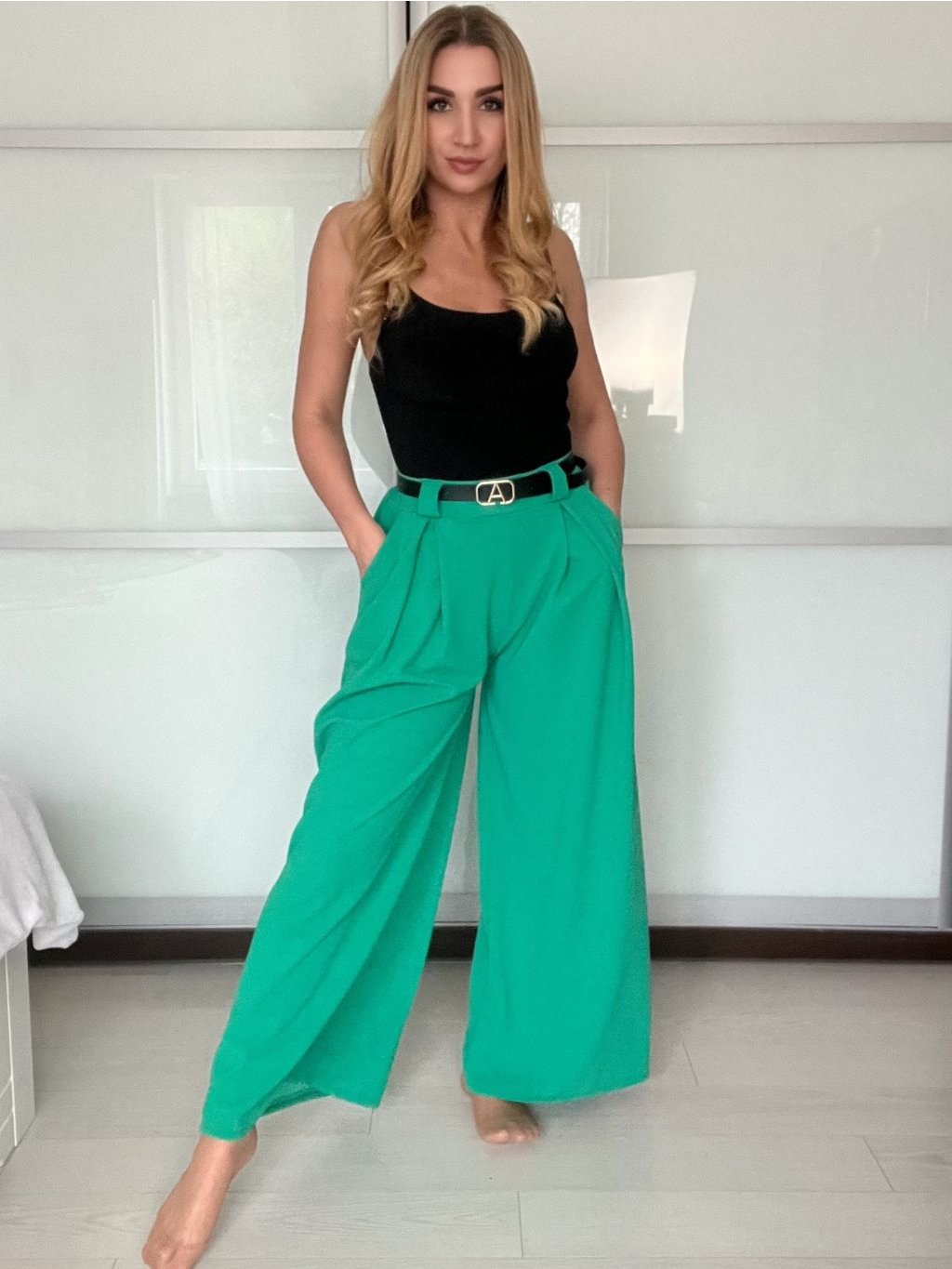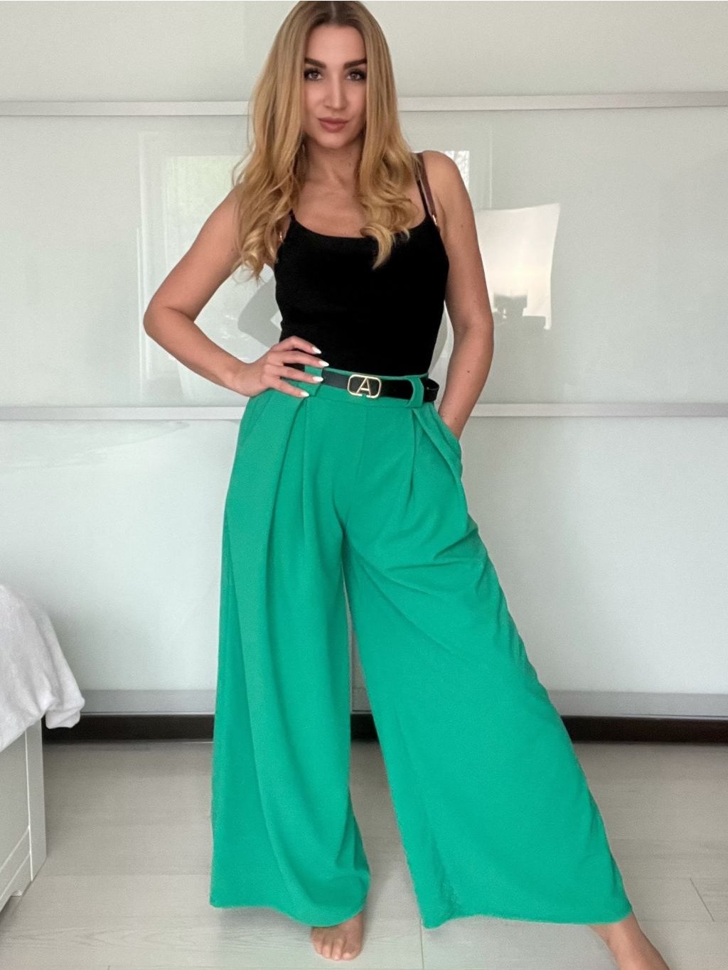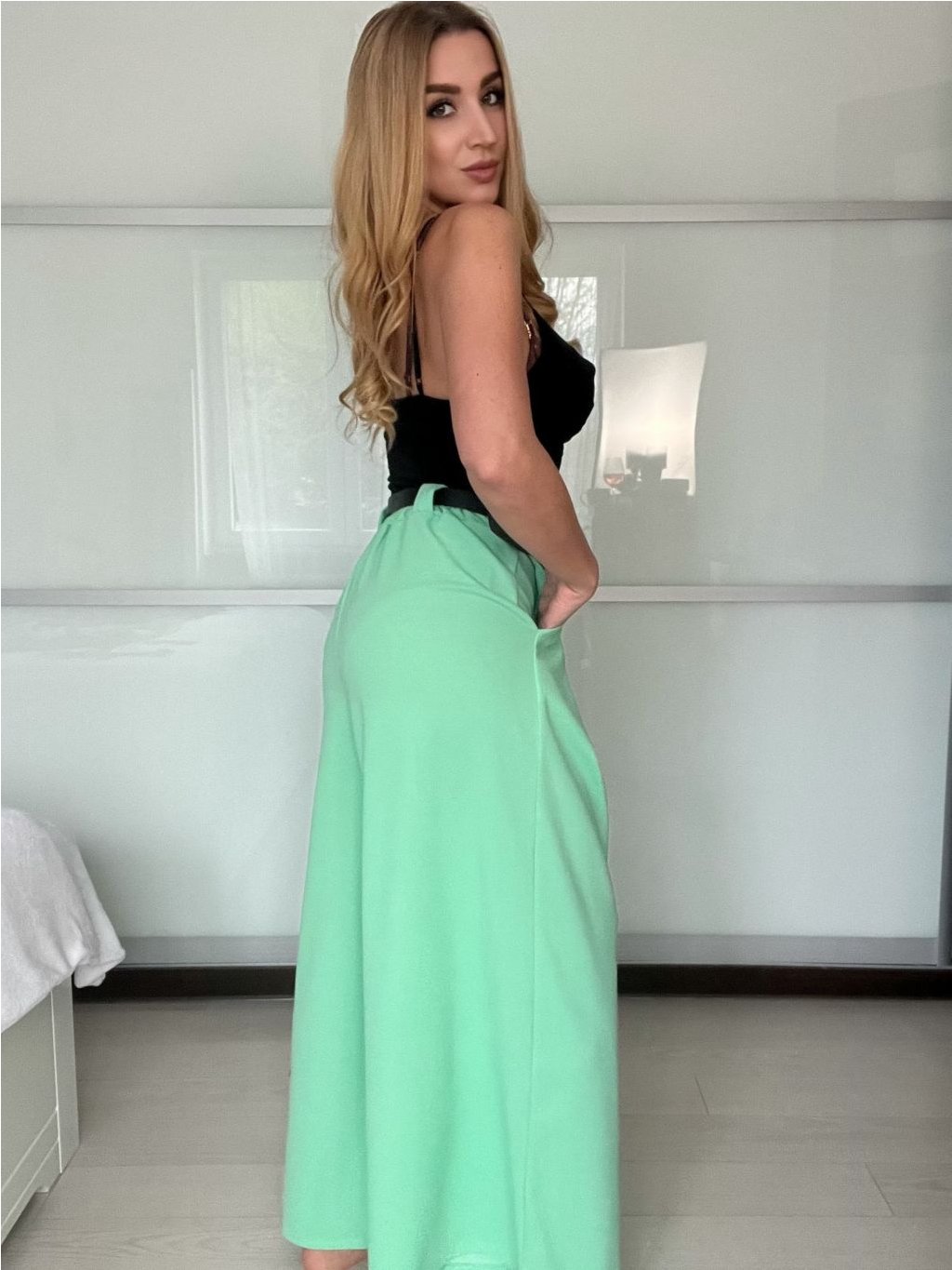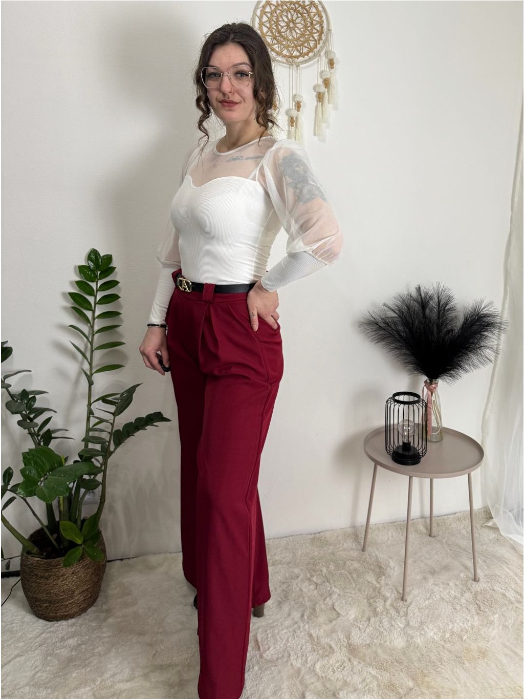Široké elegantní kalhoty s páskem