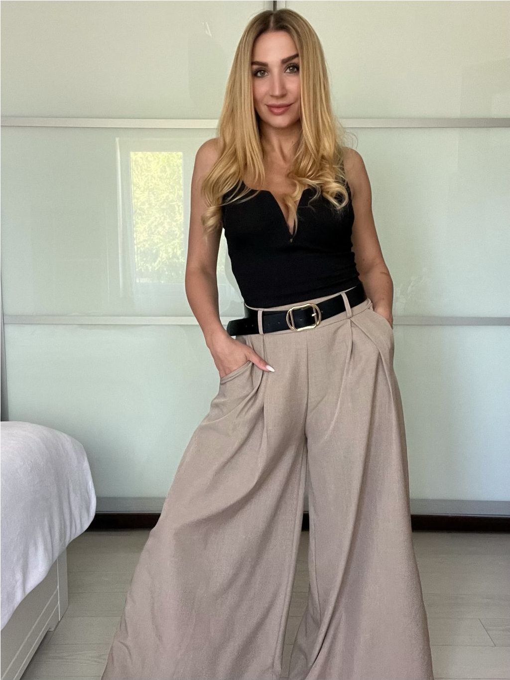 Kalhoty elegantní s páskem dámské (S/M/L ONE SIZE) ITALSKá MóDA IMSM25DEVONE/DU