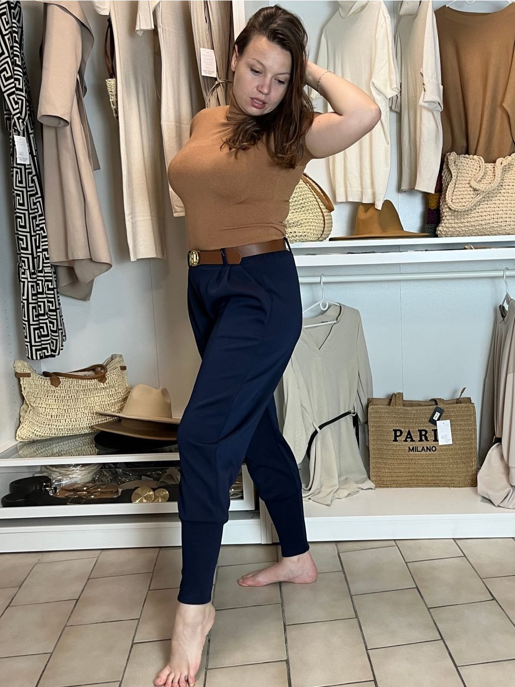Kalhoty elegantní s páskem dámské (S/M/L ONE SIZE) ITALSKÁ MÓDA IM425030/DUR