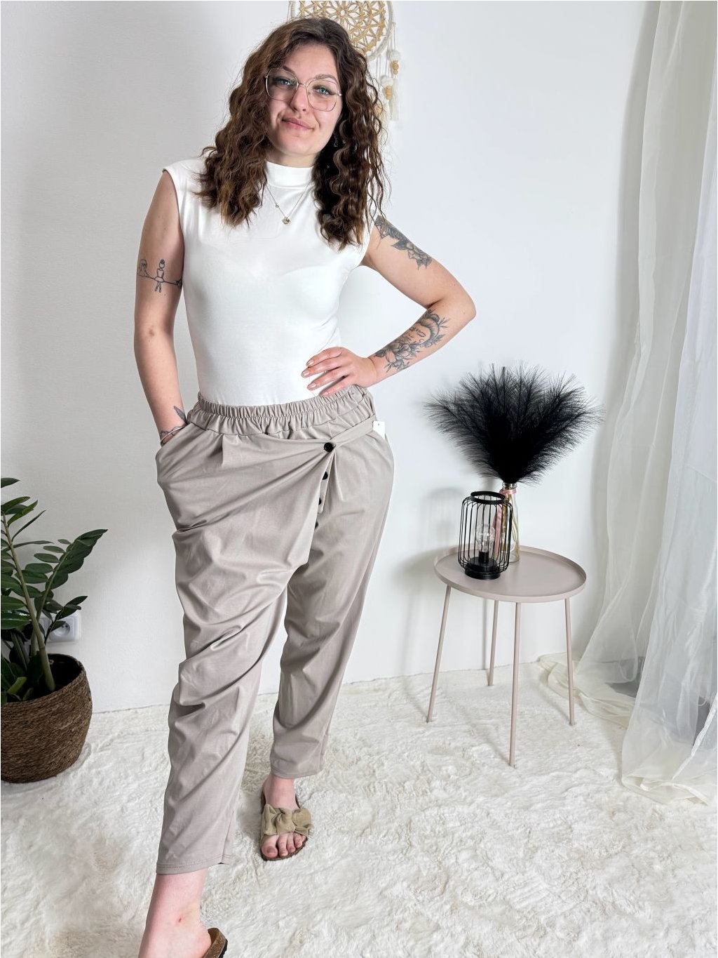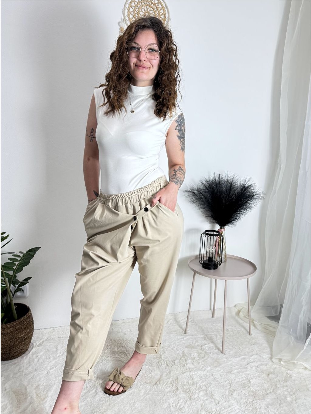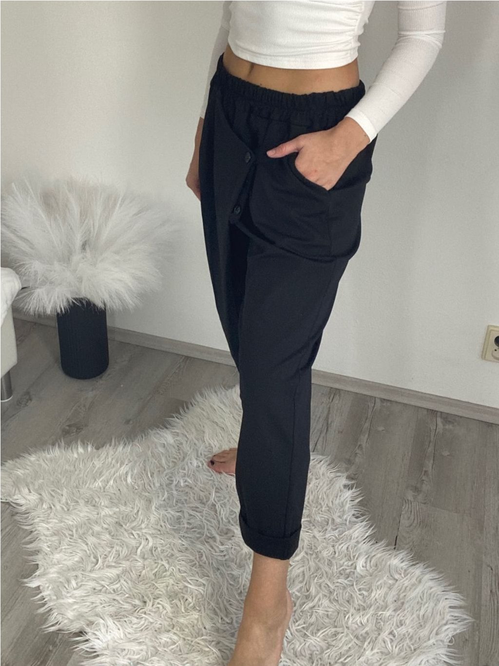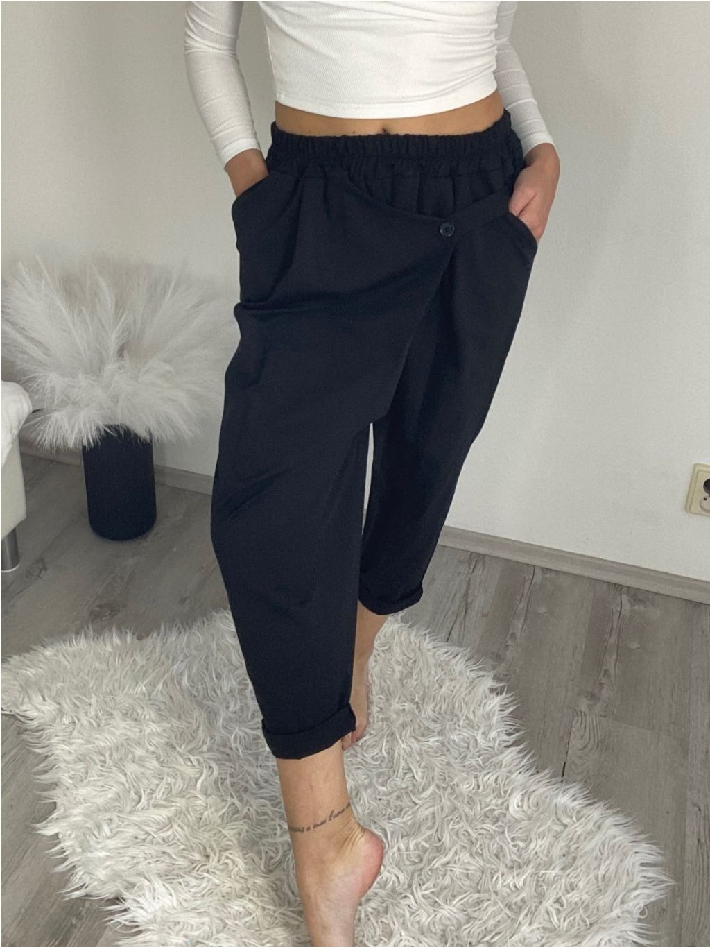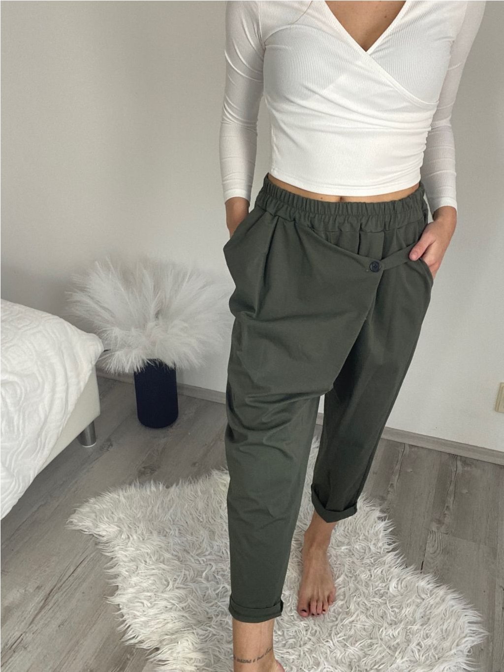 Kalhoty s knoflíkem dámské (S/M/L ONE SIZE) ITALSKÁ MÓDA IM425100/DU