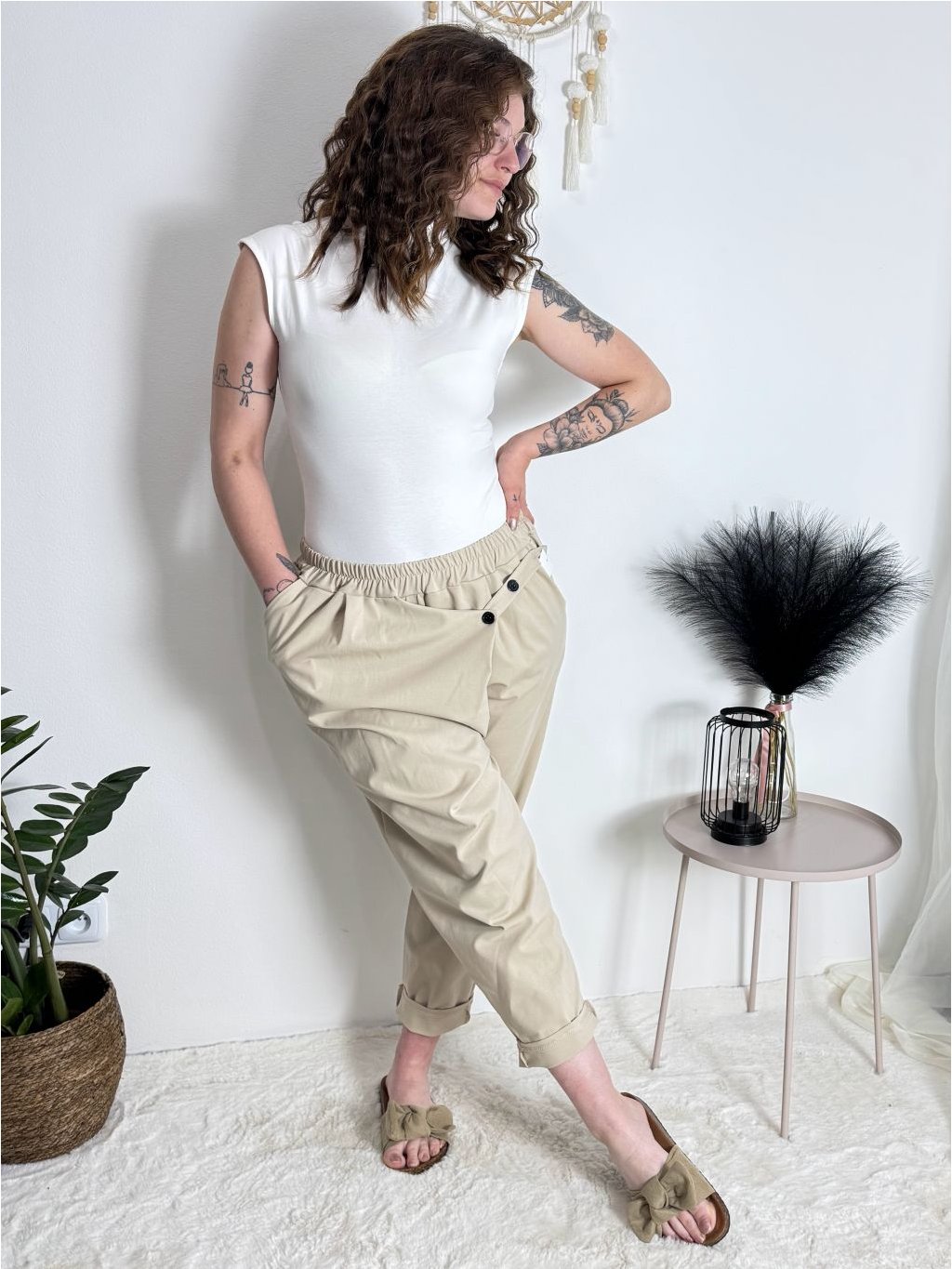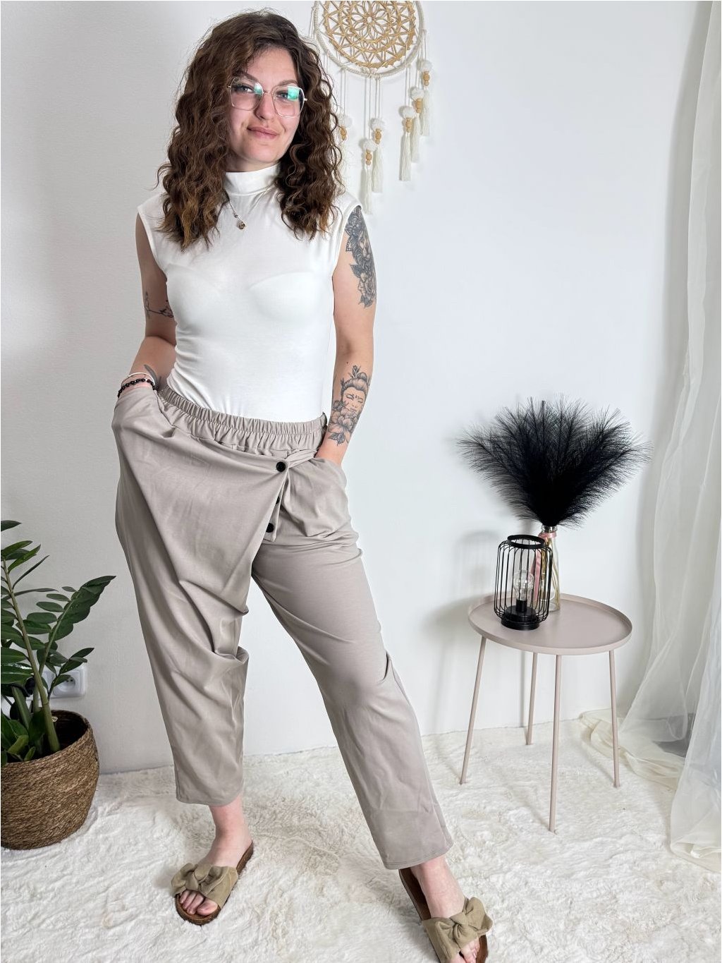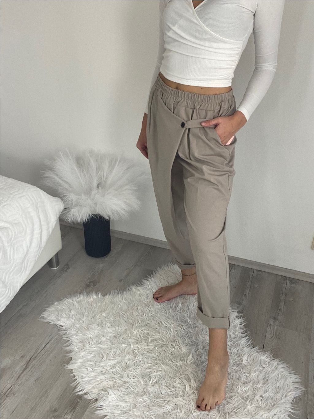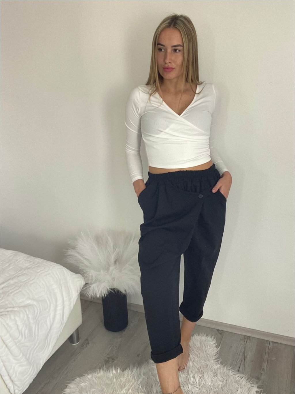 Kalhoty s knoflíkem dámské (S/M/L ONE SIZE) ITALSKÁ MÓDA IM425100/DU