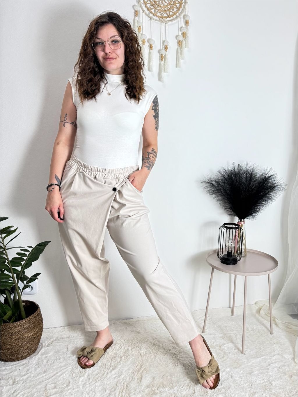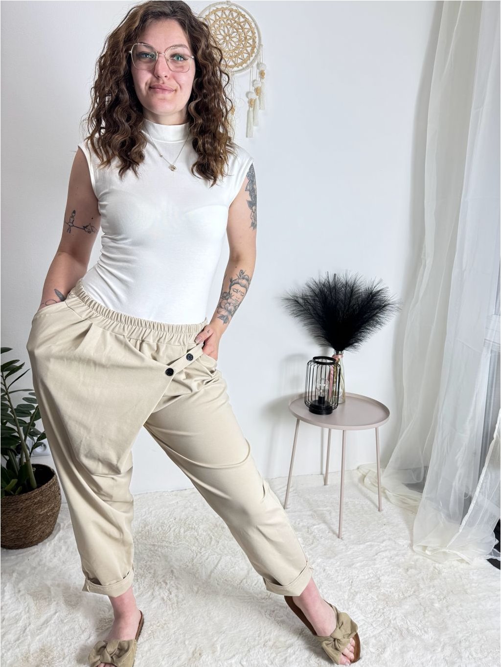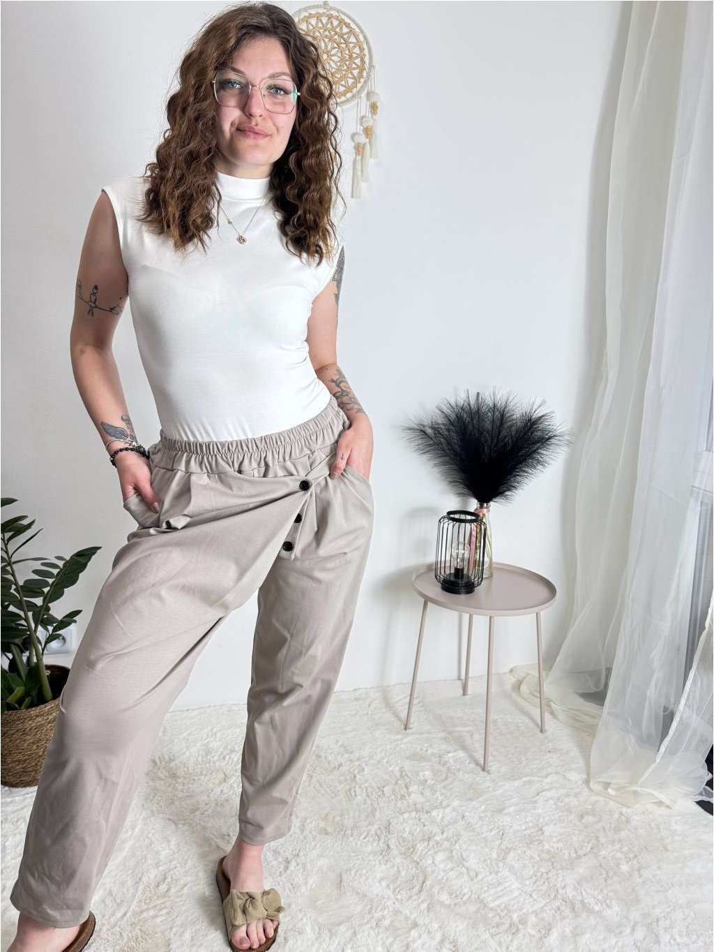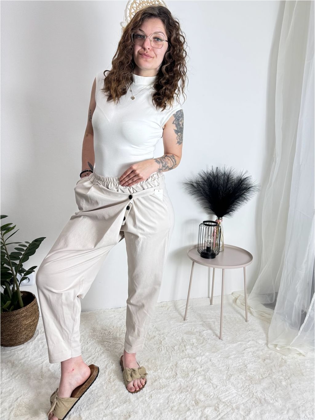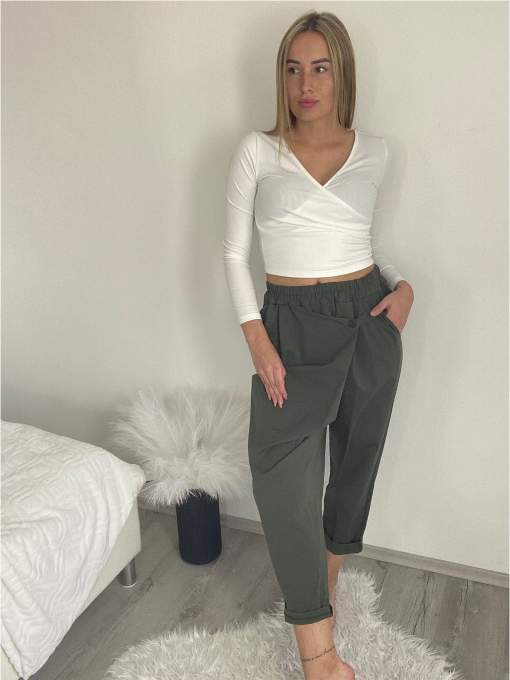 Kalhoty s knoflíkem dámské (S/M/L ONE SIZE) ITALSKÁ MÓDA IM425100/DU