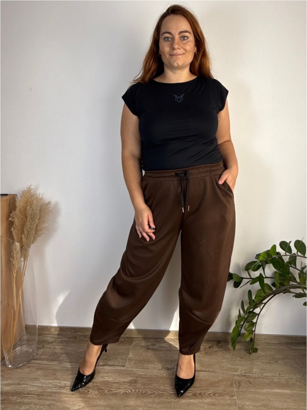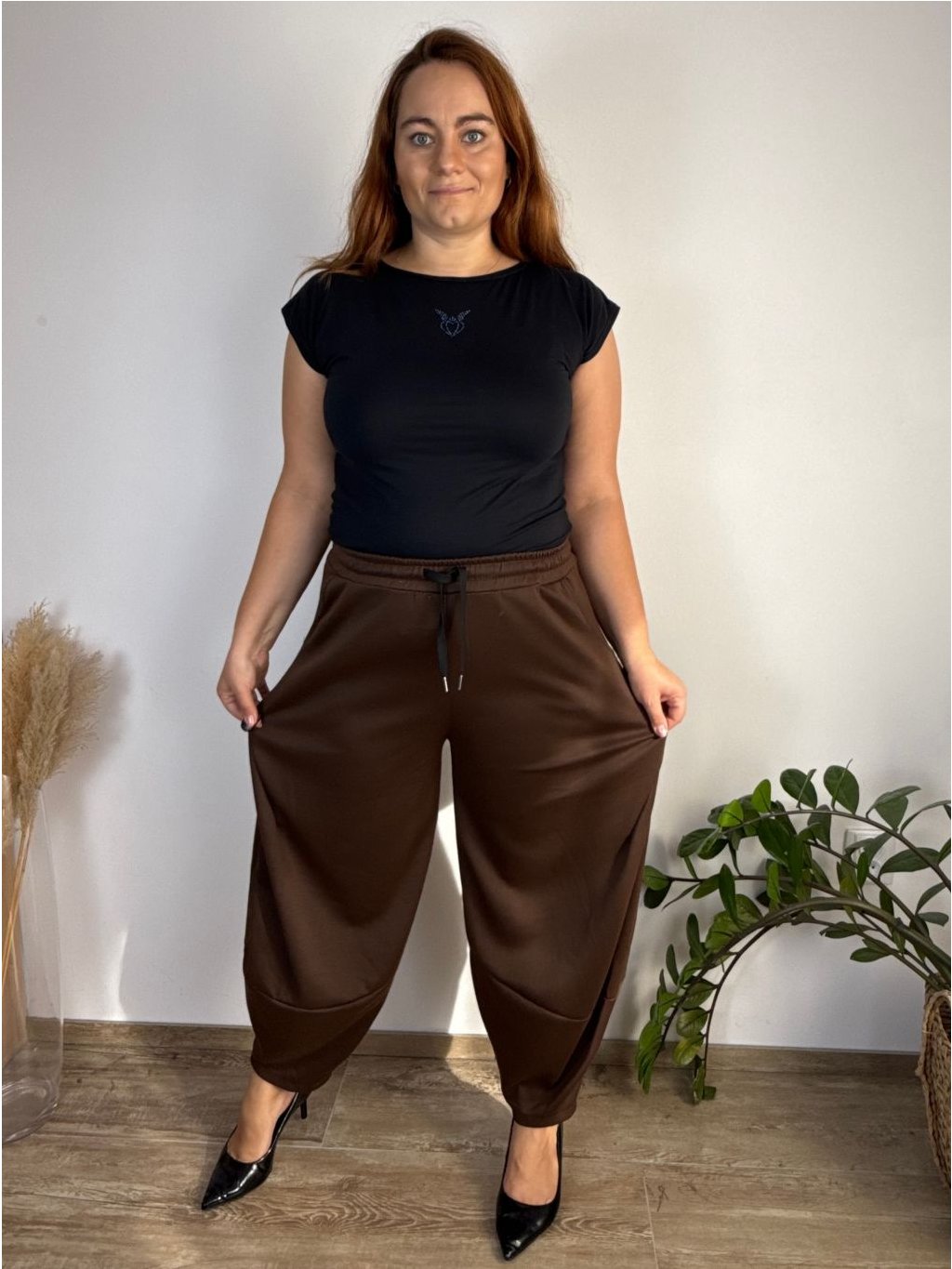 Kalhoty/tepláky volnočasové máslové balónové dámské nadrozměr (46/48/50 ONE SIZE) ITALSKÁ MÓDA IM425699