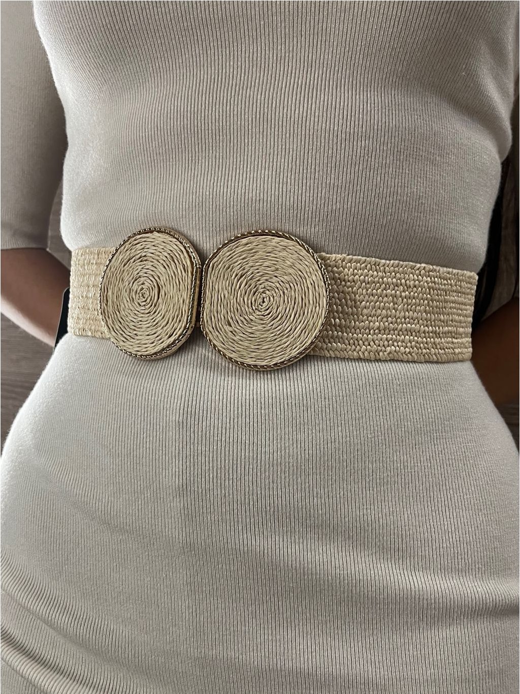 Pletený pásek s kulatou rafia sponou Dodejte svému outfitu letní šmrnc a bohémskou eleganci! Tento široký pásek z přírodních materiálů je perfektním doplňkem, který zdůrazní váš pas a oživí každé šaty, tuniku nebo kalhoty.