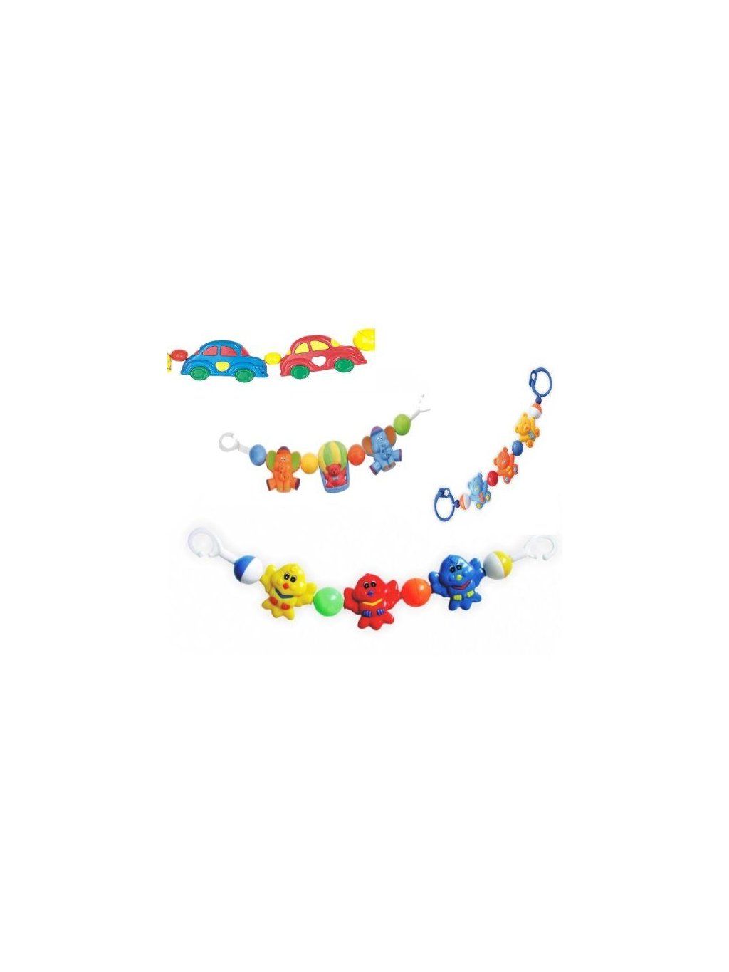 skladem lodičky a zajíčci ve vrtulníku. 136P Plastové chrastítko na kočár Jednoduché, pružné, plastové chrastítko na kočárek v různě barevných designech, které zaujme a zabaví Vaše dítě v kočárku. Chrastítko se dá jednoduše upevnit na kočárek a taktéž i demontovat. Jednotlivé chrastítka jsou vybavena chrastícími elementy a snadno tak zaujmou pozornost Vašeho dítěte. Vyrobeno z kvalitního materiálu, velmi snadná údržba - možno opláchnout mýdlovou vodu nebo utřít hadříkem.