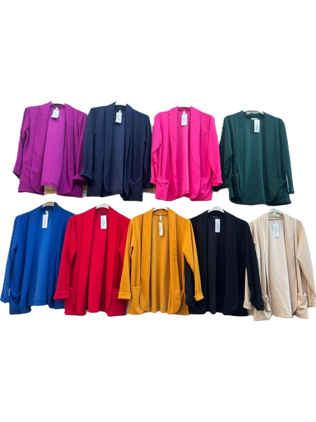 Sako elegantní dlouhý rukáv dámské nadrozměr (48/50/52 ONE SIZE) ITALSKÁ MÓDA IMD25513