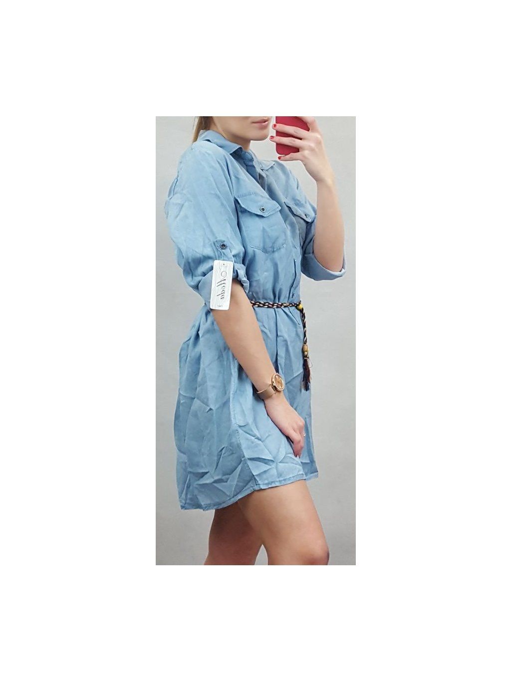 Šaty 3/4 dlouhý rukáv košilové riflové dámské (uni s/m) ITALSKÁ MÓDA IM920091 modrá