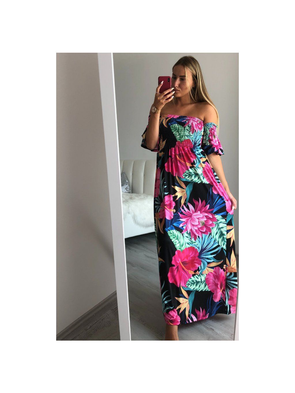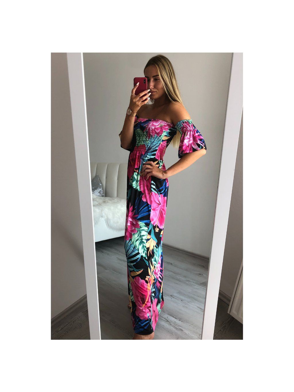 Šaty carmen dlouhé letní icecool žabičkované dámské (S/M ONE SIZE) ITALSKÁ MÓDA IMM21128/DR