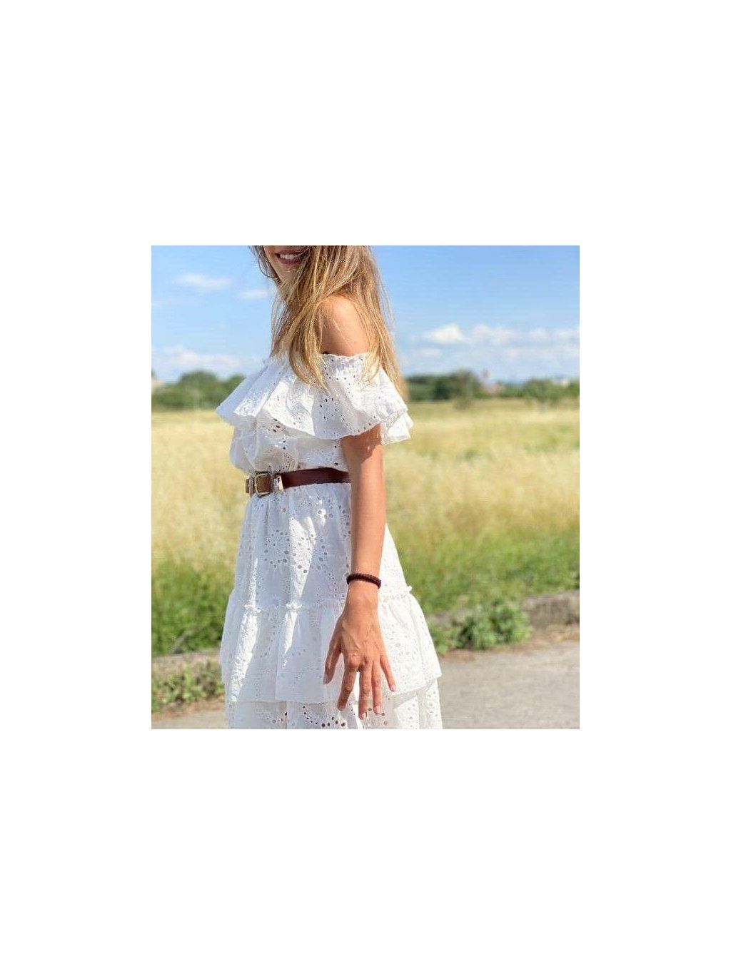 Šaty carmen letní krátký rukáv krajkové dámské (UNI S/M) ITALSKÁ MÓDA IMM20417 bílá