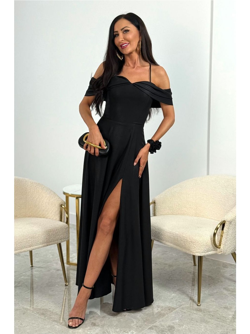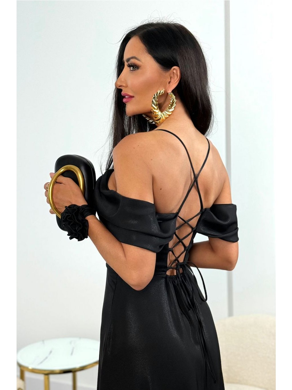 Šaty dlouhé carmen přes ramena společenské třpytivé dámské (34-42) POLSKÁ MÓDA PMLEL25SILLA1